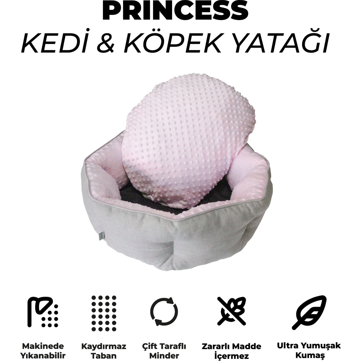 • ???? Princess kedi ve köpek yatağı, bir kaza olduğunda veya rutin temizlik için kolayca yıkanabilir ve bakımı yapılabilir. Makinenizin hassas ayarında yatağın iç ve dış minderini 30 derecede yıkama yapabilirsiniz.