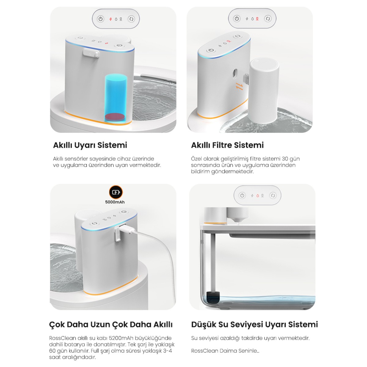 1. Kablosuz tasarım ile kolay kullanım sağlar. 2. Akıllı özellikleri sayesinde su seviyesini ve temizliği takip eder. 3. Ultrafiltre teknolojisi ile saf ve temiz su sunar. 4. Otomatik fonksiyonları ile pratiklik kazandırır. 5. Hafif ve