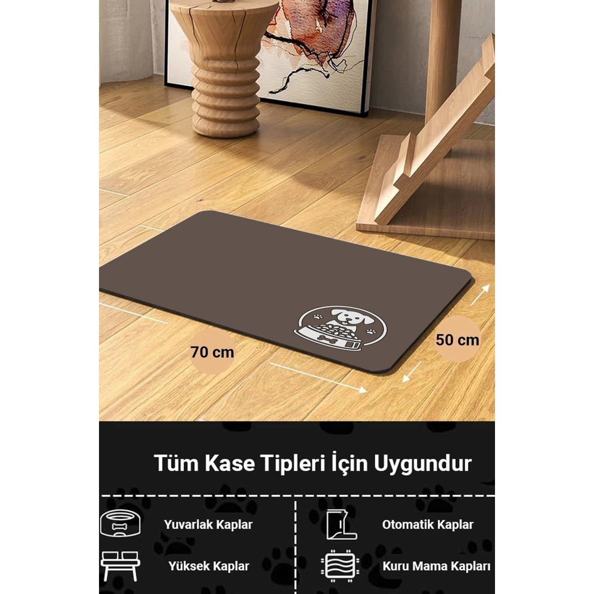 Kahverengi Köpek ve Kedi Beslenme Paspası, Kaymaz ve Sıvı Geçirmez, 50X70CM