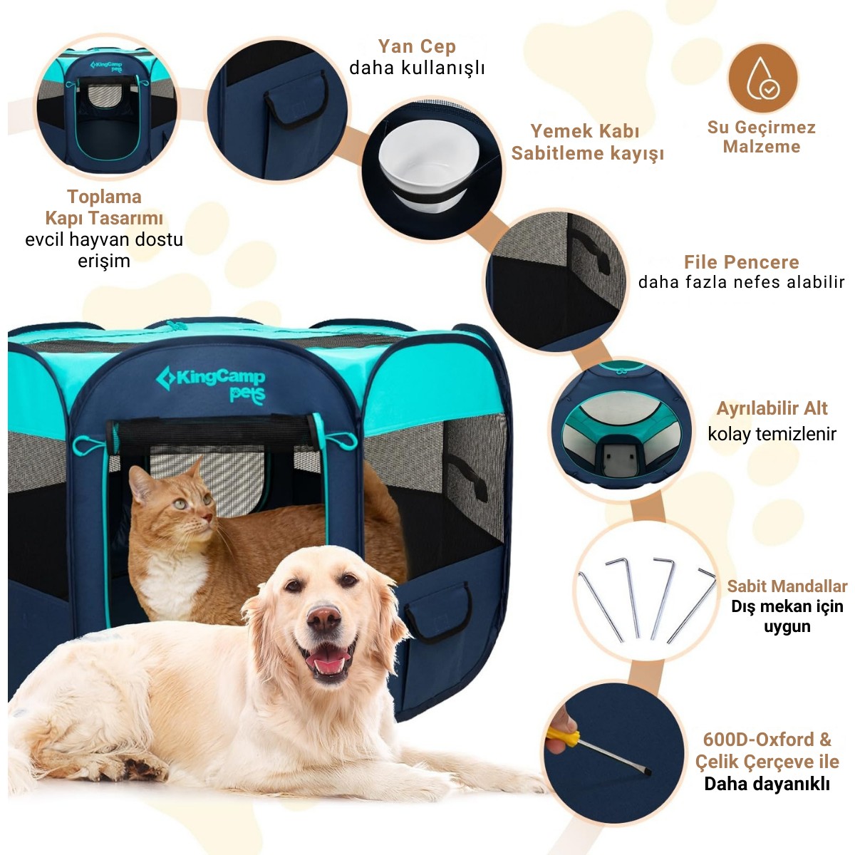 Bu katlanabilir köpek çadırı, evcil hayvanınızın yatağı, yiyecekleri ve oyuncakları için ideal bir alan sunarak güvenli ve konforlu bir ortam sağlar. Köpekler, kediler ve yavru hayvanlar için mükemmel bir köpek seyahat çadırı ve pet oyun alanıdır.