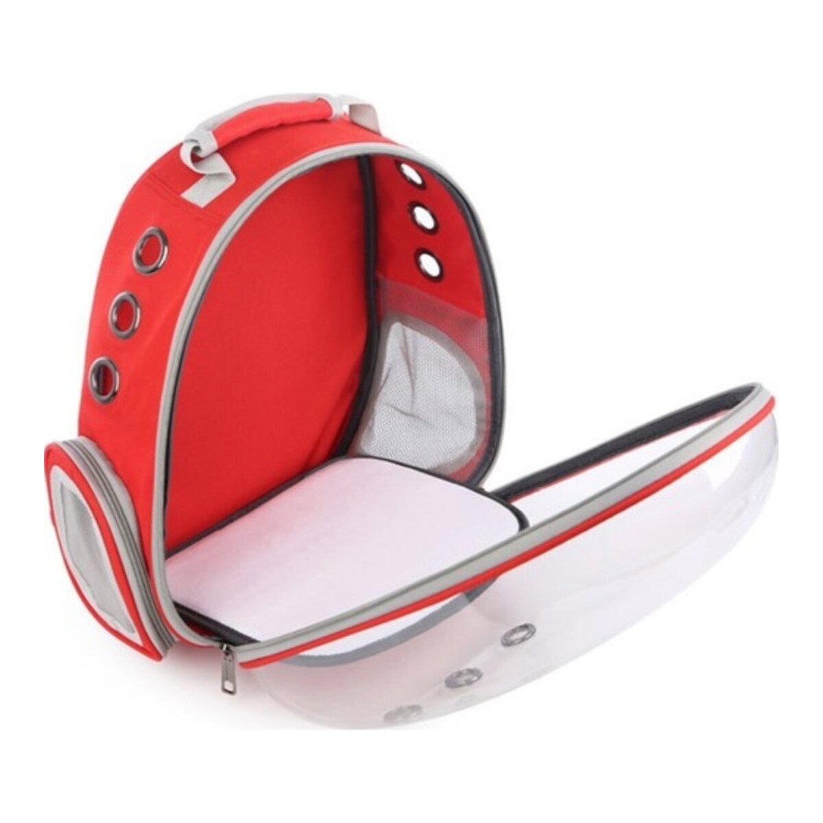 Ksburda Kırmızı Şeffaf Hava Kanallı Astronot Kedi Köpek Taşıma Çanta Peluş Taban