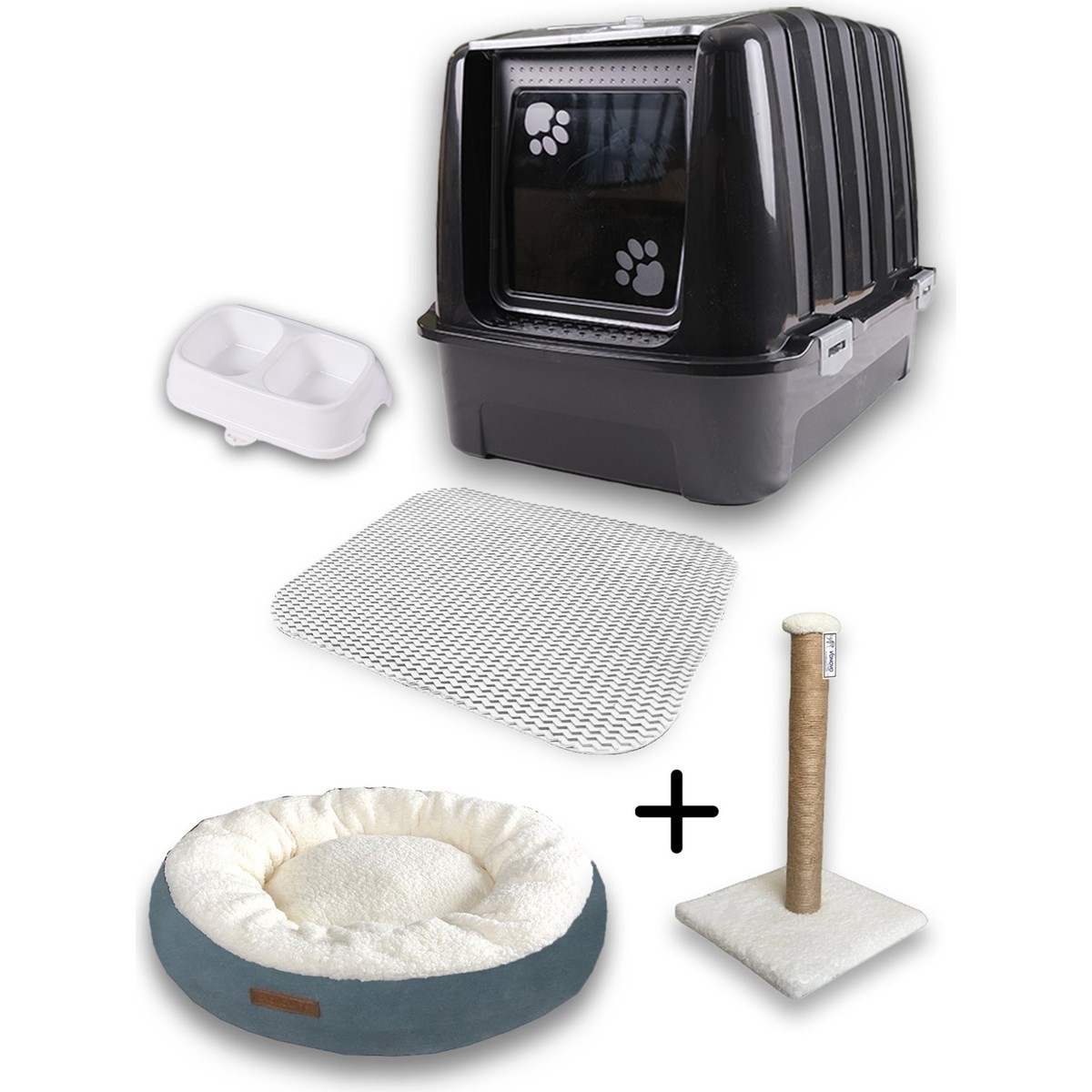 Kurtbay Şekil Kedi Tuvaleti Premium Kedi Başlangıç Seti – Açık gri Lkt1