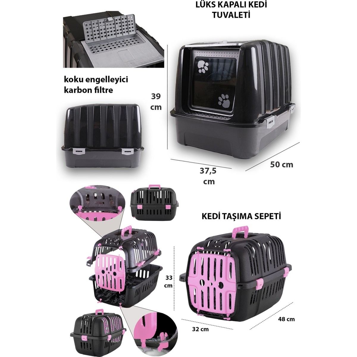 • LÜKS KAPALI KEDİ TUVALETİ: Kürek hediyelidir. Ön kapak ve taşıma kulpu özel kırılmaz polikarbon malzemeden üretilmiştir. Üst kısım çıkarılabilir. Bu sayede istenildiğinde açık tuvalet olarak kullanılabilir. Ve kolay temizleme sağlar. Ön kapağı yukarıya doğru açılabilir. Ürünün üst kısmında bulunan filtre özel olarak üretilmiştir ve içerisinde karbon bulunduğu için bu sayede kokuyu emer ve dışarı vermez. Ürün ölçüleri En: 37,5 Genişlik : 52 Yükseklik: 39. Pratik kapalı kedi tuvaleti 4 parçaya ayrılabilir, kullanım dışında saklaması kolaydır. Endişeli, sinirli kediler ve henüz kapalı tuvalet kullanmaya alışkın olmayan ve ürkek yavru kediler için idealdir. Evcil hayvanınızı yeni kapalı tuvaletine alıştırmanız için başlangıçta kapısını açık şekilde bırakabilirsiniz.