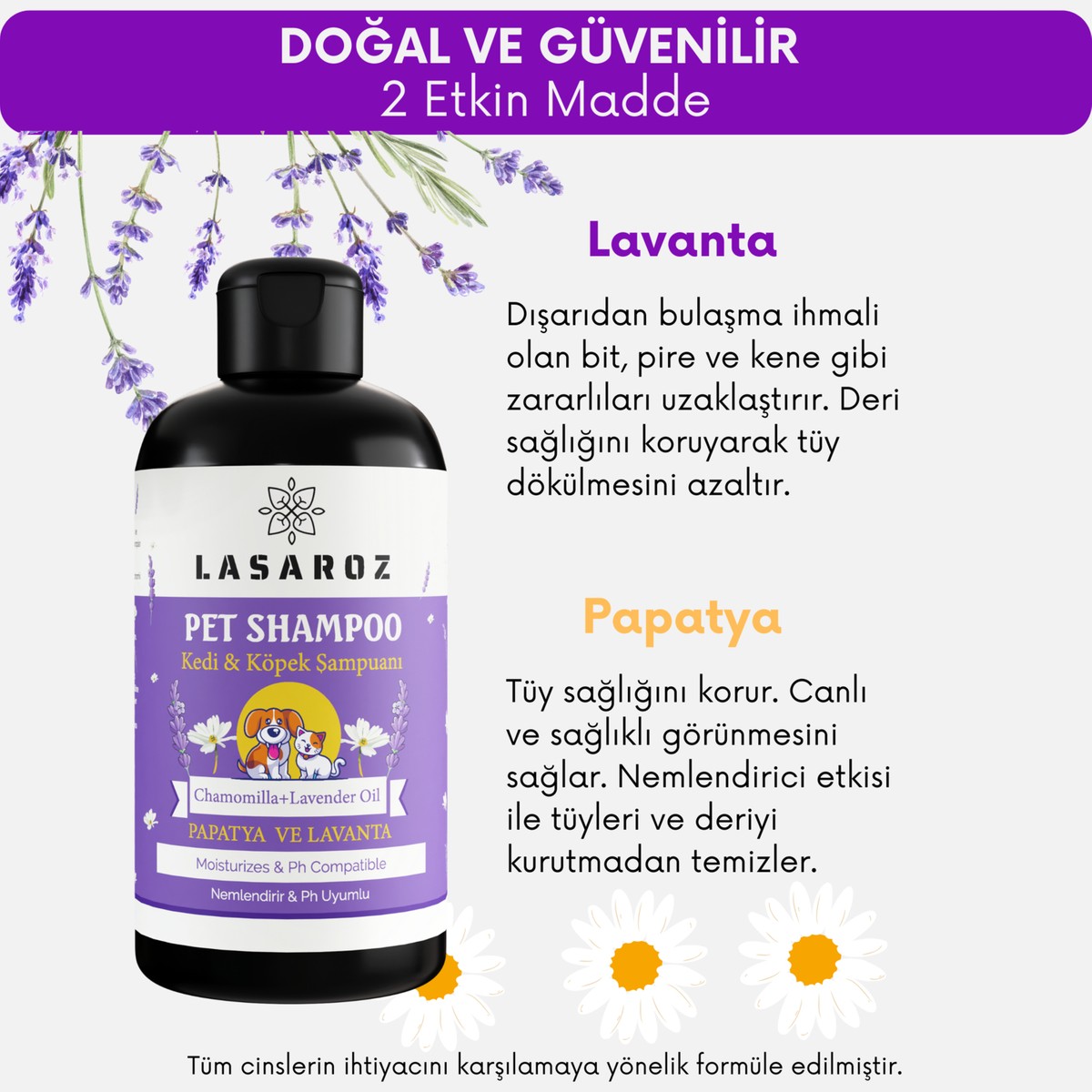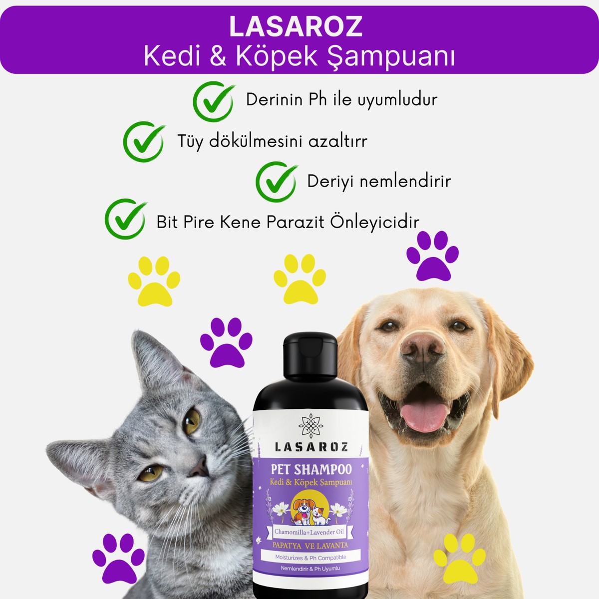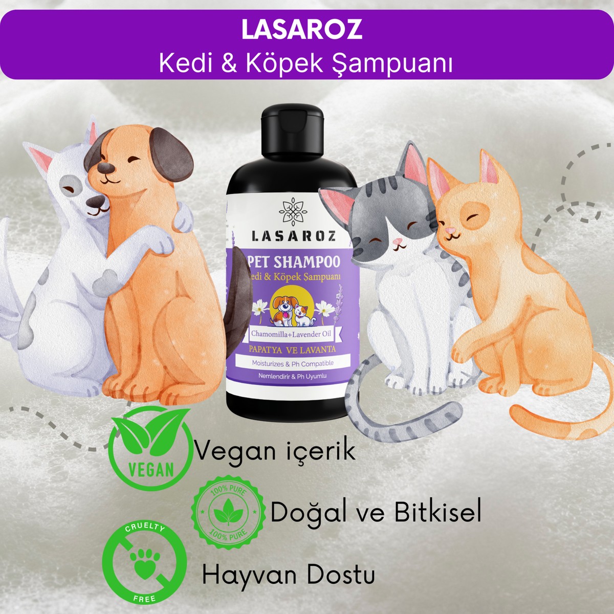 LASAROZ Kedi Köpek Şampuanı Lavanta ve Papatya Yağlı Tüy Dökme Önleyici Nemlendirci Etkili 250 ml