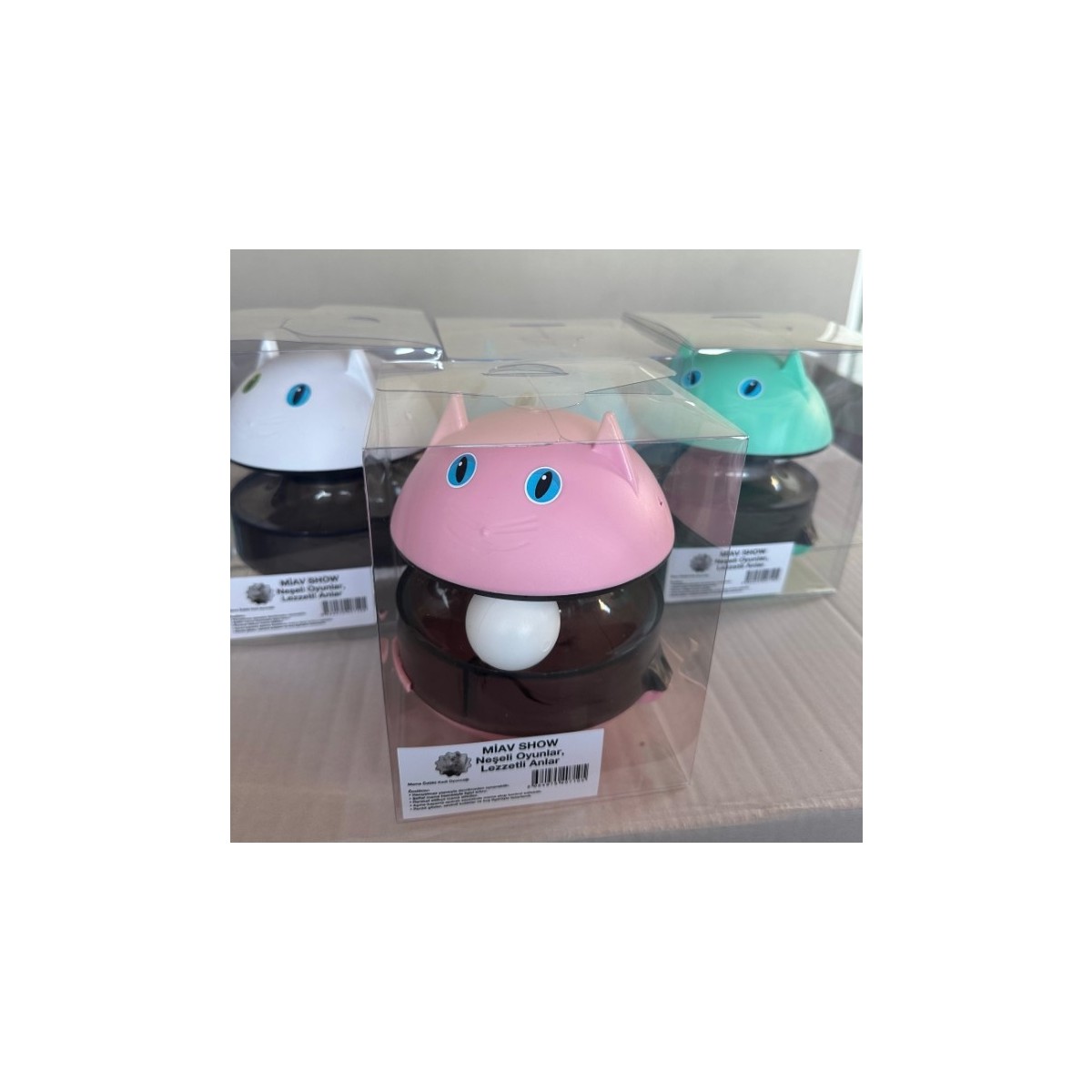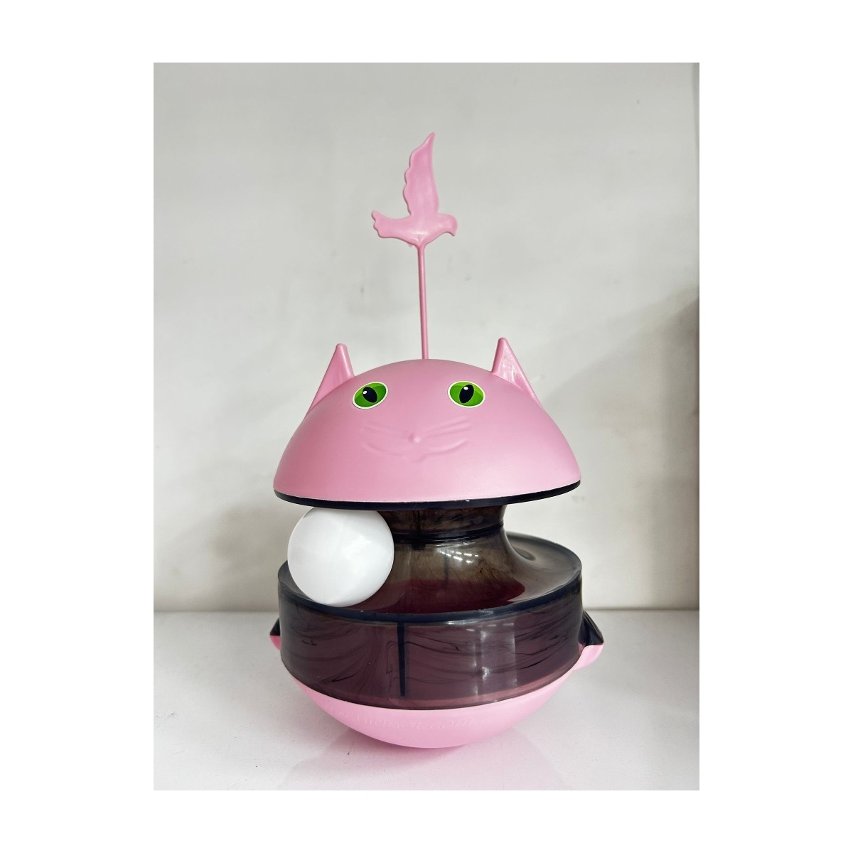 Hacıyatmaz sistemi sayesinde oyuncak devrilmez, her darbede tekrar ayağa kalkar ve mama çıkışı sağlayarak kedinizin ilgisini sürekli canlı tutar.