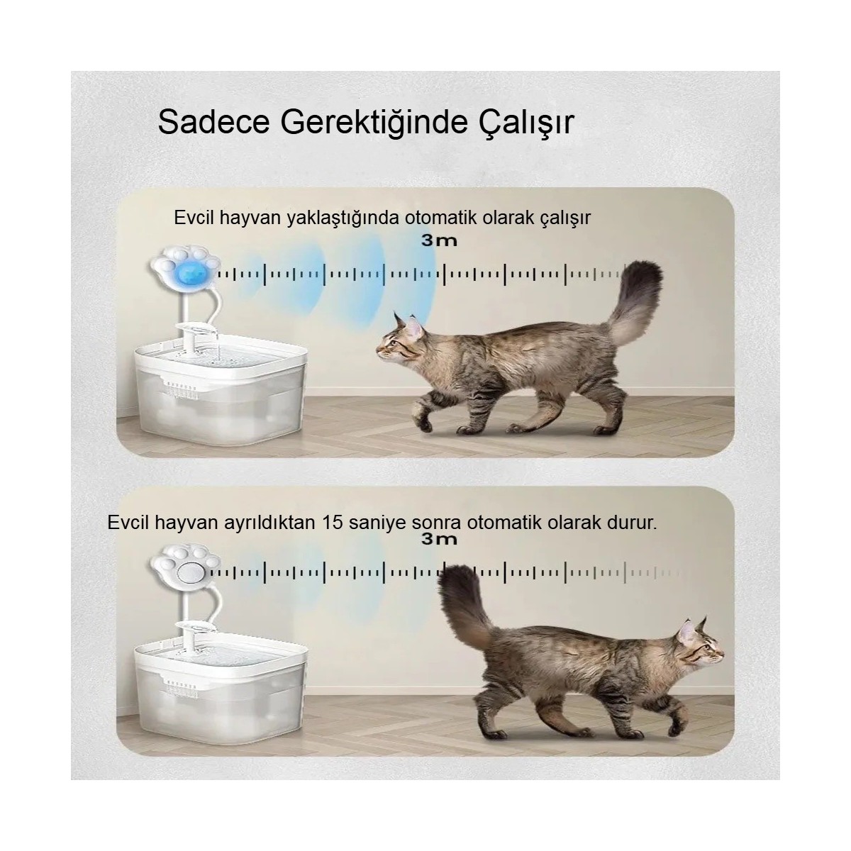 • Otomatik Çalışma: Evcil hayvanınız yaklaştığında su pınarı otomatik olarak devreye girer.