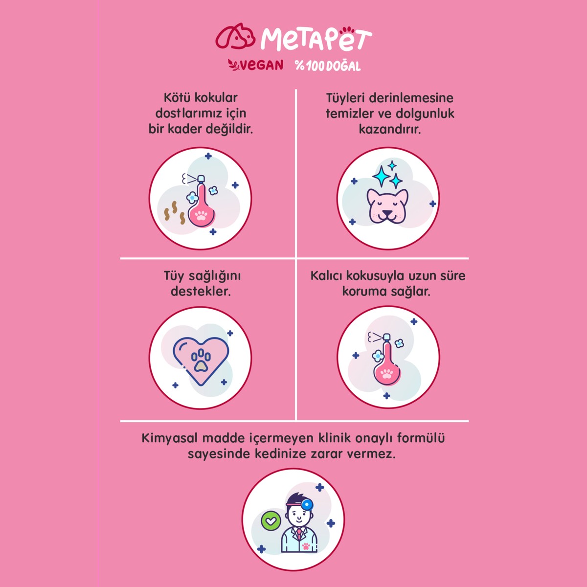 Metapet Koku Giderici Kuru Köpük Köpek Şampuanı, Doğal Ve Organik Köpek Parfümü, Yavrular Için Uygun 200 Ml