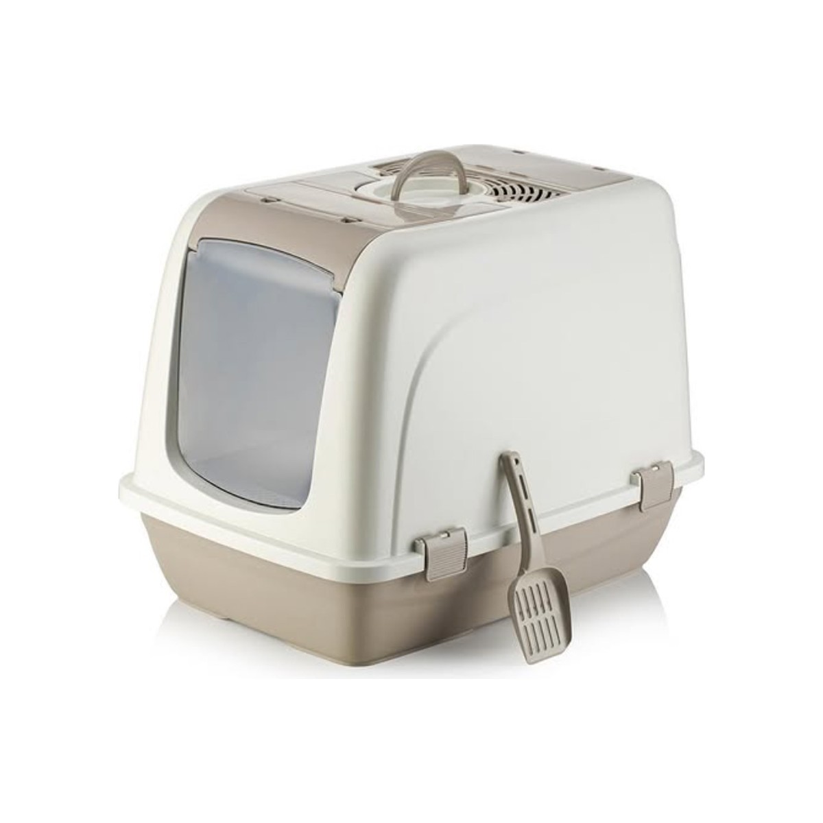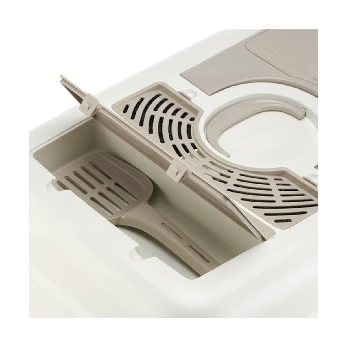 Harika bir ürün. Gerçekten çok büyükmüş fotoğraflarda gözükenden. Yeterli bir ürün ön taraftaki delikli kısım da çıkartılabiliyor. Kalite olarak da gayet iyi bu fiyata en iyisi diyebilirim. Büyük kedi tuvaleti arıyorsanız bundan başkasını almaya hiç gerek yok gayet kaliteli üstte hava filtresi var içinde süngerler dahi var. Kürek de hediye geli bu arada
