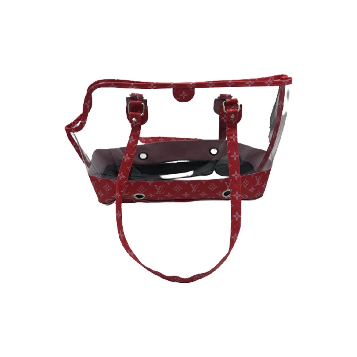 Küçük Irk Köpek Askılı Şeffaf Taşıma Çantası Kırmızı 49x15x30 cm