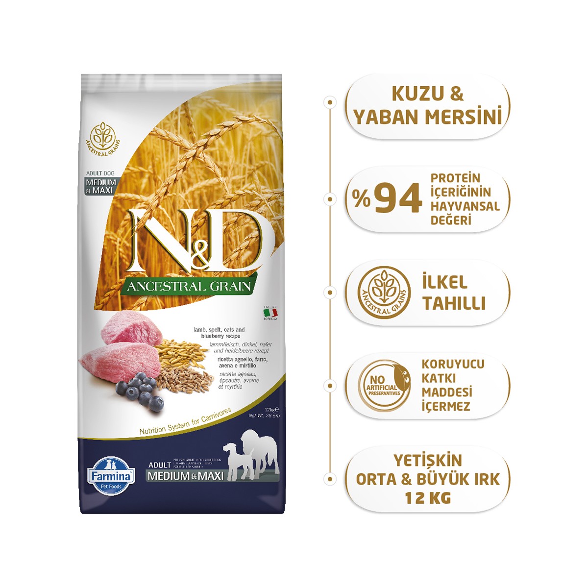 N&D Kuzu Etli Yaban Mersini Düşük Tahıllı 12 Kg Yetişkin Köpek Maması
