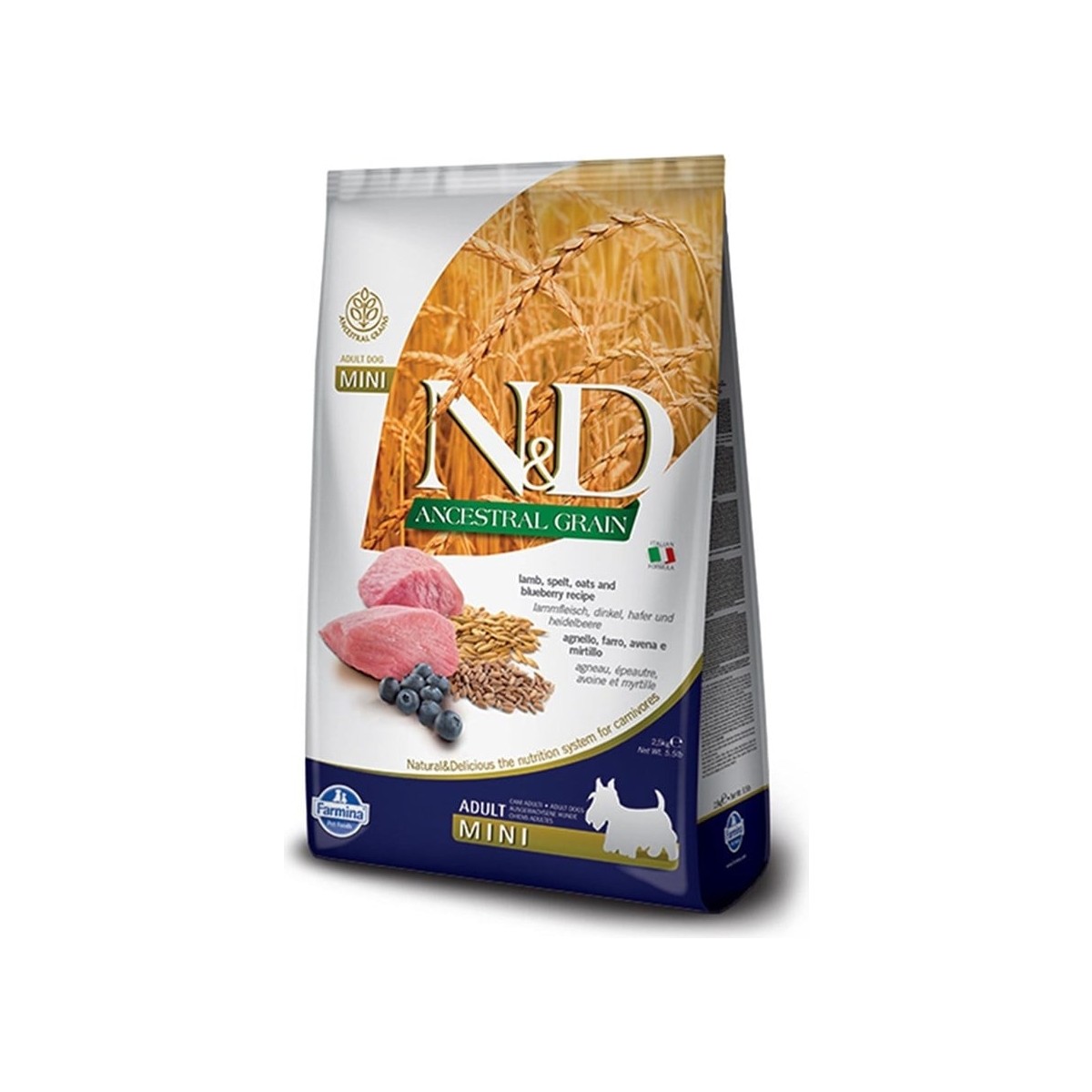 Farmina N&D Natural Delicious Düşük Tahıllı Kuzu Etli Yaban Mersinli Küçük Irk Yetişkin Köpek Maması 7 Kg Malzemeler Taze kemiksiz kuzu eti 20, kurutulmuş kuzu eti 18, kılçıksız buğday 10, yulaf 10, kurutulmuşbütün yumurtalar, taze ringa balığı, kurutulmuş ringa balığı, hayvan yağı, balık yağı, kurutulmuş şekerpancarı küspesi, bitkisel bezelye lifi, kurutulmuş havuç, kurutulmuş yonca, inulin, fructooligosaccharides,mannan-oligosakkaritler, yaban mersini tozu 0.5, kurutulmuş elma, nar tozu, kurutulmuş tatlı portakal,ıspanak tozu, Psyllium 0.3, toz frenk üzümü, sodyum klorür, kurutulmuş bira mayası, zerdeçal kökü 0.2, glukozamin, kondroitin sülfat, Marigold özü lutein kaynağı. Takviyeleri Kg Başına Besin katkı maddeleri: A vitamini 15000IU; D3 Vitamini 1500 IU; E vitamini 600mg, C Vitamini 150mg; Niasin 37.5mg; 15mg pantotenik asit, B2 Vitamini 7.5mg, B6 Vitamini 6mg; B1 vitamini 4.5mg; K vitamini 1.5mg, H Vitamini 0.38mg ; folik asit 0.45mg, B12 Vitamini 0.1mg; 2500mg kolin klorür; Beta-karoten 1.5mg; metiyonin hidroksilaz 910mg analog Zn-çinko şelat; metiyonin hidroksilaz 380mg analog Mn- Mangan şelatı; glisin hidratın Fe-Demir şelatı 250 mg ; metiyonin hidroksilaz 88mg analog Cu-bakır şelat; Se-selenomethionine 0.4mg, DL-metiyonin 4000mg; Taurin 1000mg; L-karnitin 300mg. Duyusal katkı maddeleri: aloe vera 1000mg ekstresi ; yeşil çay ekstresi 100mg; üzüm çekirdeği ekstresi 100mg. Antioksidanlar: biberiye özü.