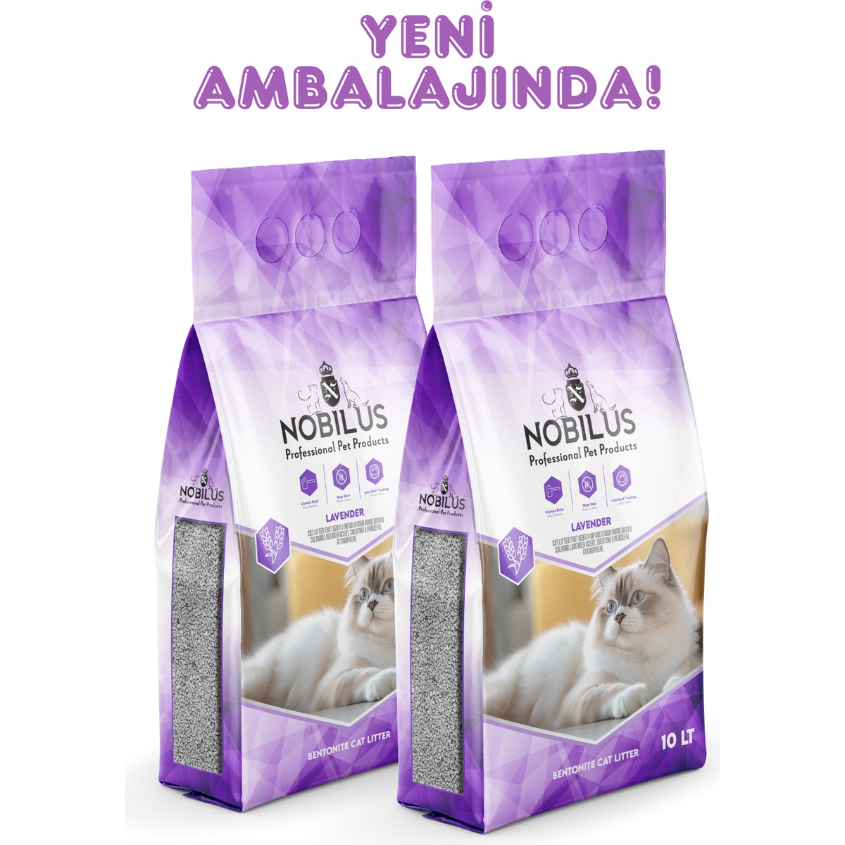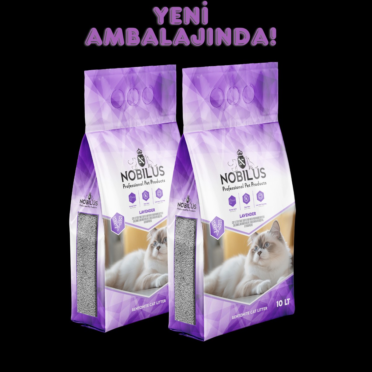 NOBİLUS Lavanta Kokulu 2’li Avantaj Paketi, Koku Hapseden, Topaklanan, Tozsuz Kedi Kumu 10 Lt x 2 Adet