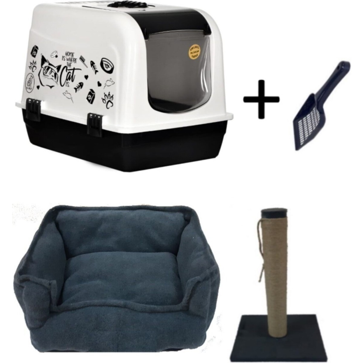 Ocean King Kapalı Maxi Kedi Tuvalet Kabı Üsten Açılır ( Dikdörtgen Yatak, ve Tırmalama Seti )