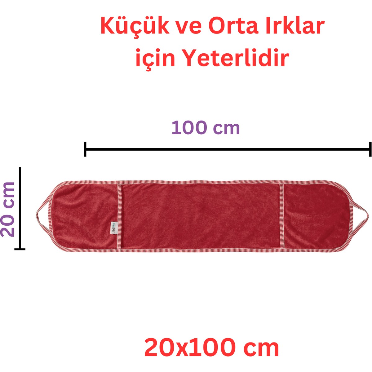 Cepli Pratik Köpek Havlusu, Süper Su Emici Mikrofiber, 20×100 cm, KIRMIZI