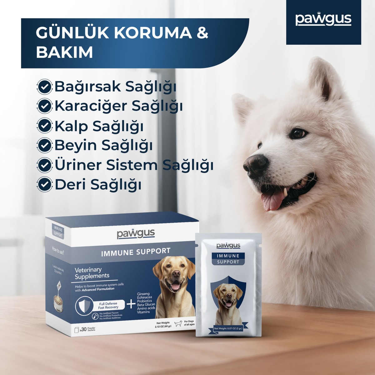 Pawgus Veteriner Gıda Takviyeleri Köpekler İçin İmmune Support Günlük Vitamin Desteği BağIşıklık Kuvvetlndirici 30 x 2 gr