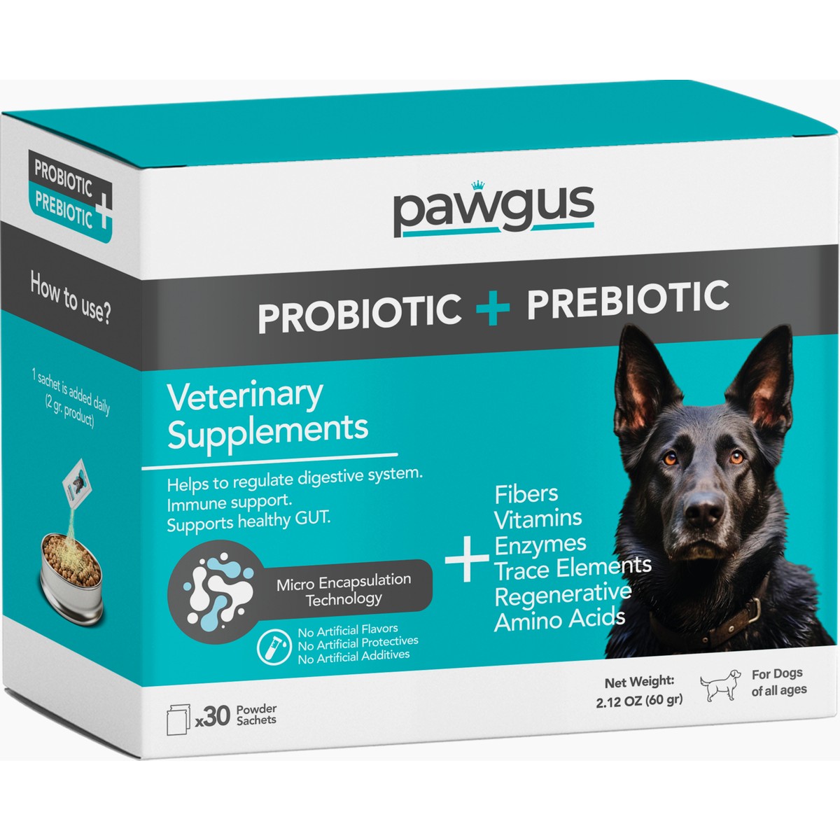 Pawgus Veteriner Gıda Takviyeleri Köpekler İçin Probiyotik + Prebiyotik Takviye 30 x 2 gr