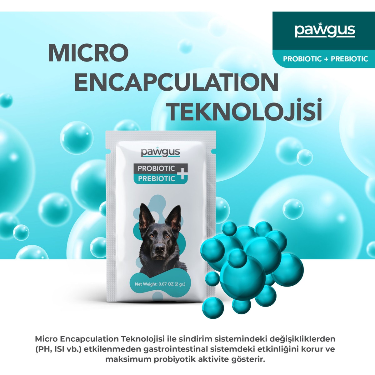 – Pawgus Köpekler İçin Probiyotik + Prebiyotik bir ilaç değildir, köpeğiniz için doğal bileşenlerden oluşan bir gıda takviyesidir.