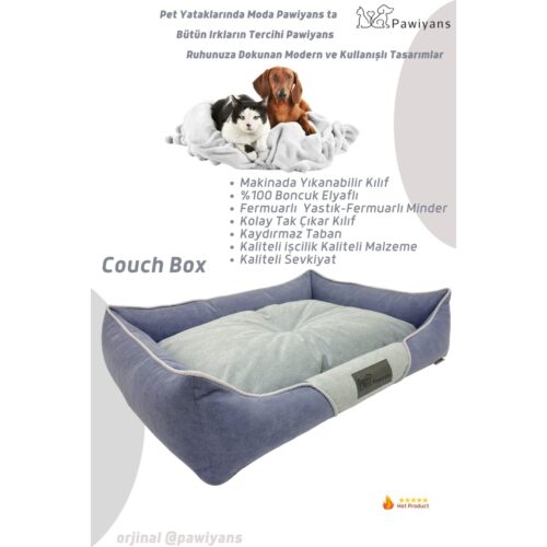 Pawiyans Couch Box Kedi Köpek Yatağı Yıkanabilir Fermuarlı Astarlı Elyaf Dolgu