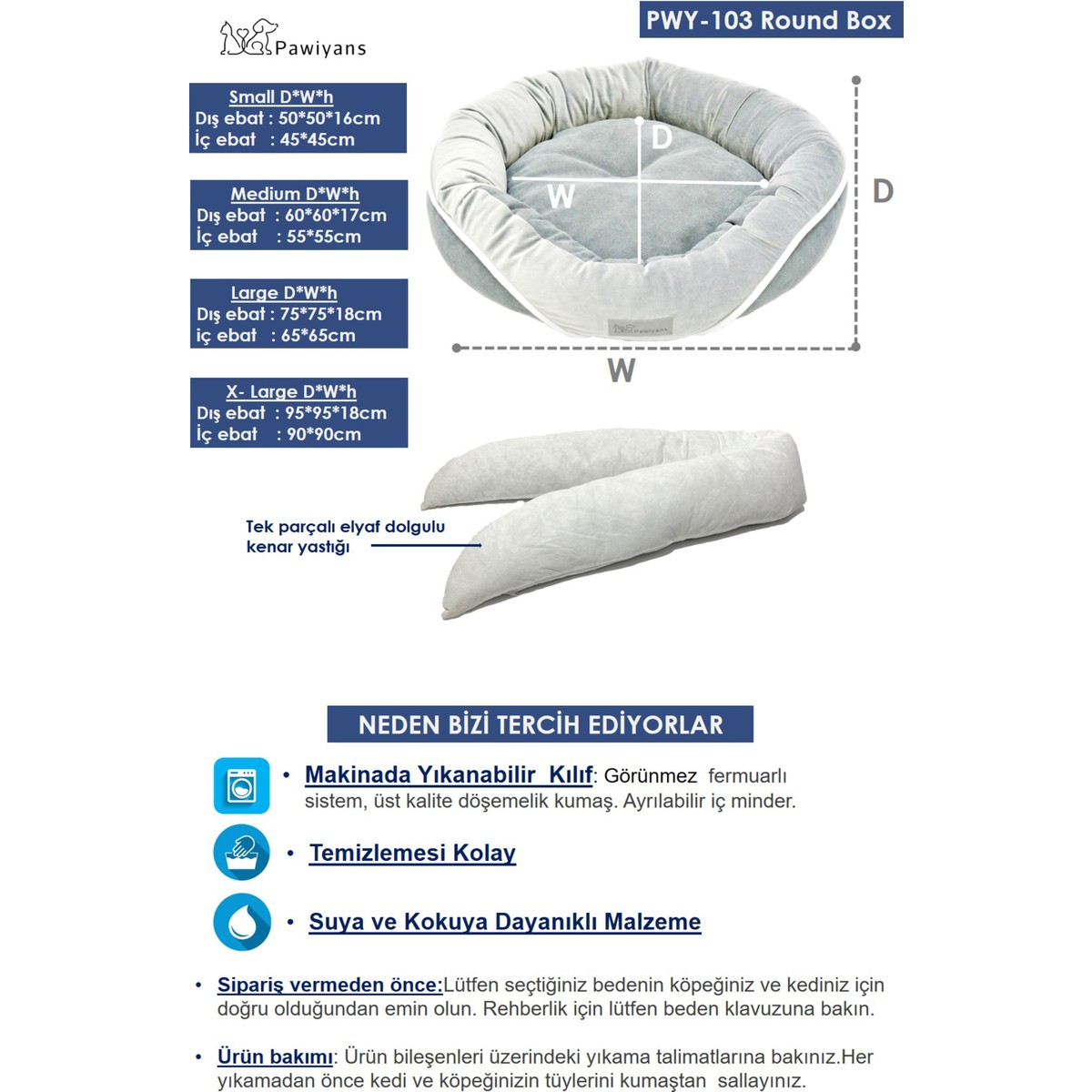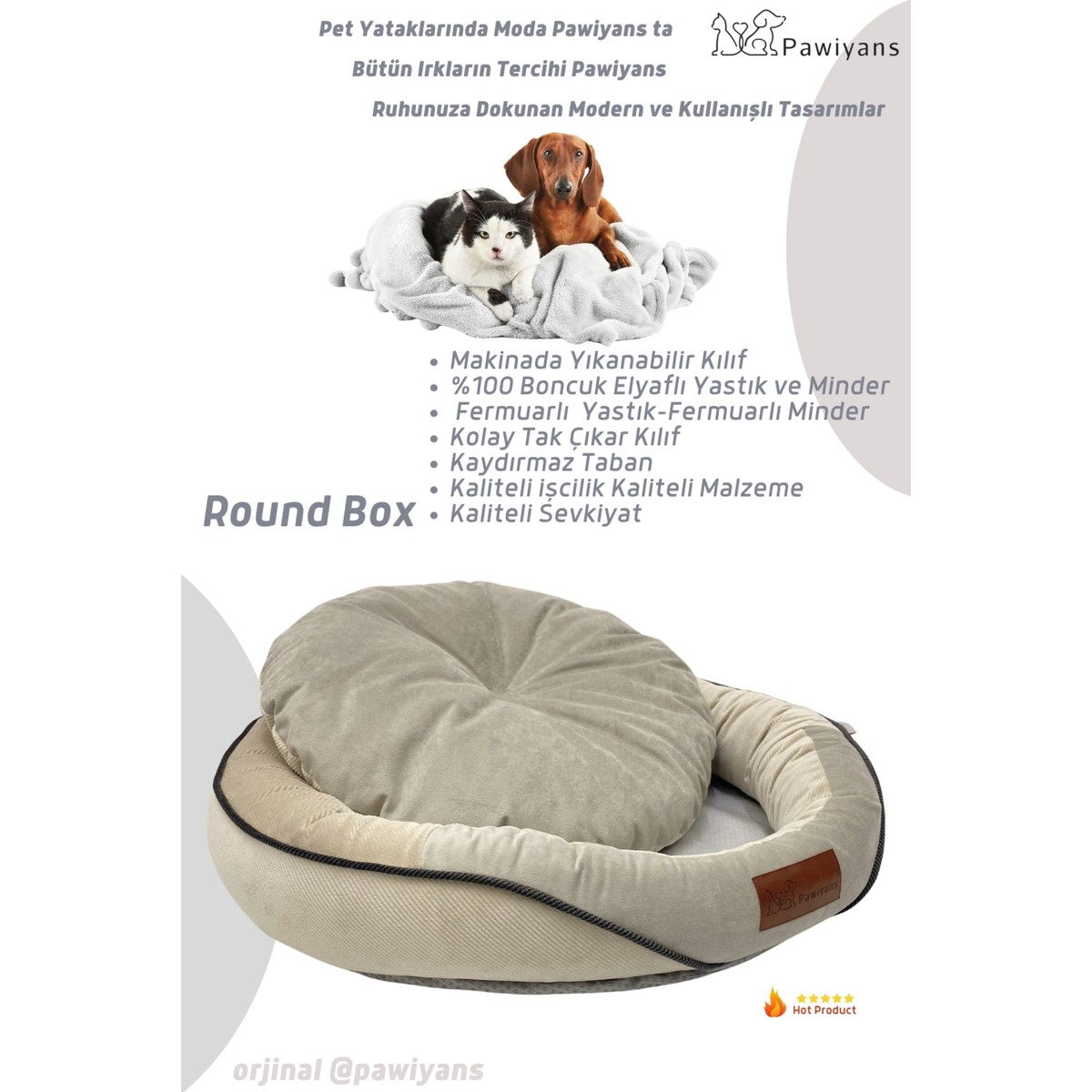 Pawiyans Round Box Kedi ve Köpek Yatağı Üst Kalite Yıkanabilir 2 Fermuarlı, Kılıf Astarlı %100 Elyaf