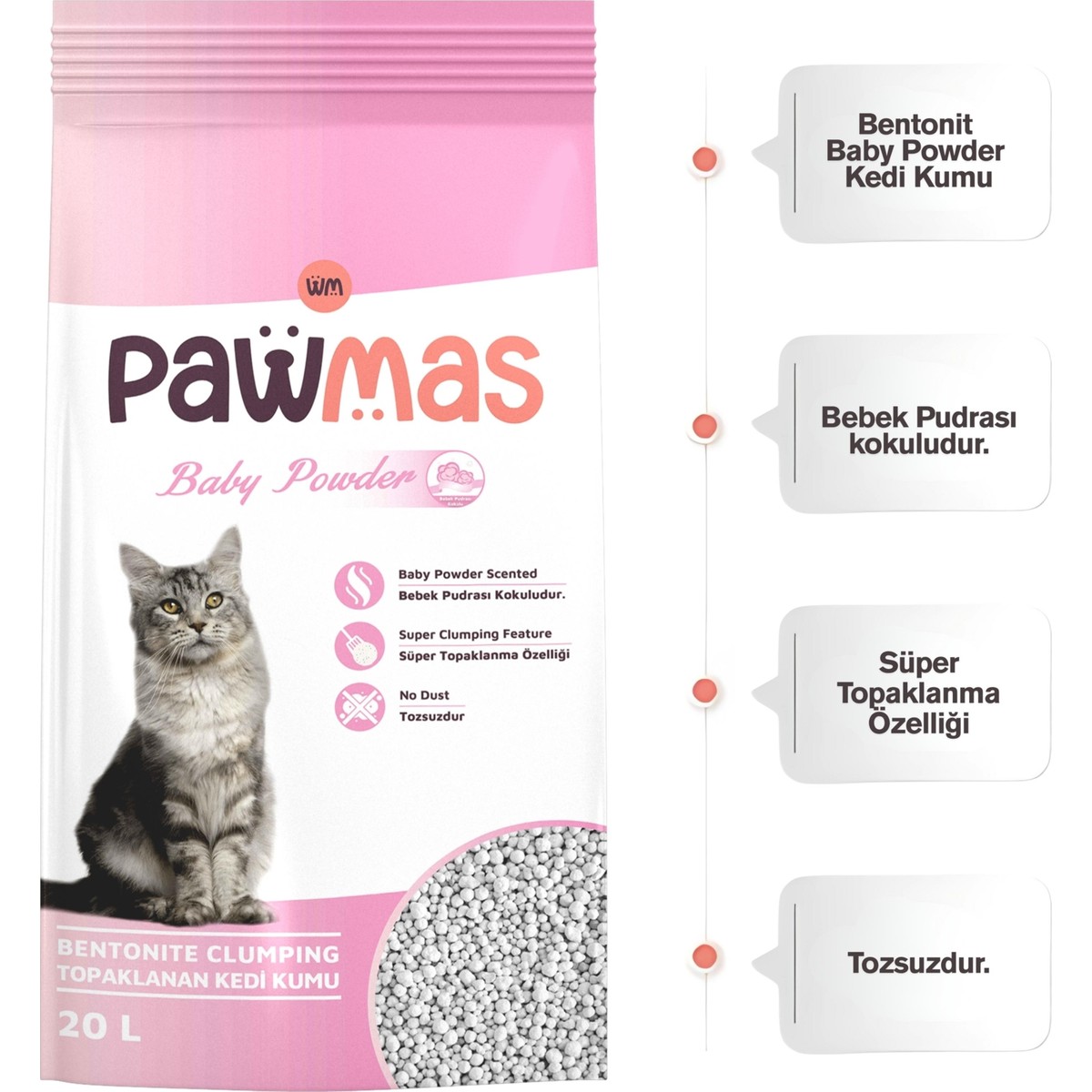 Pawmas Bebek Pudrası Kokulu Bentonit Kedi Kumu 20LT