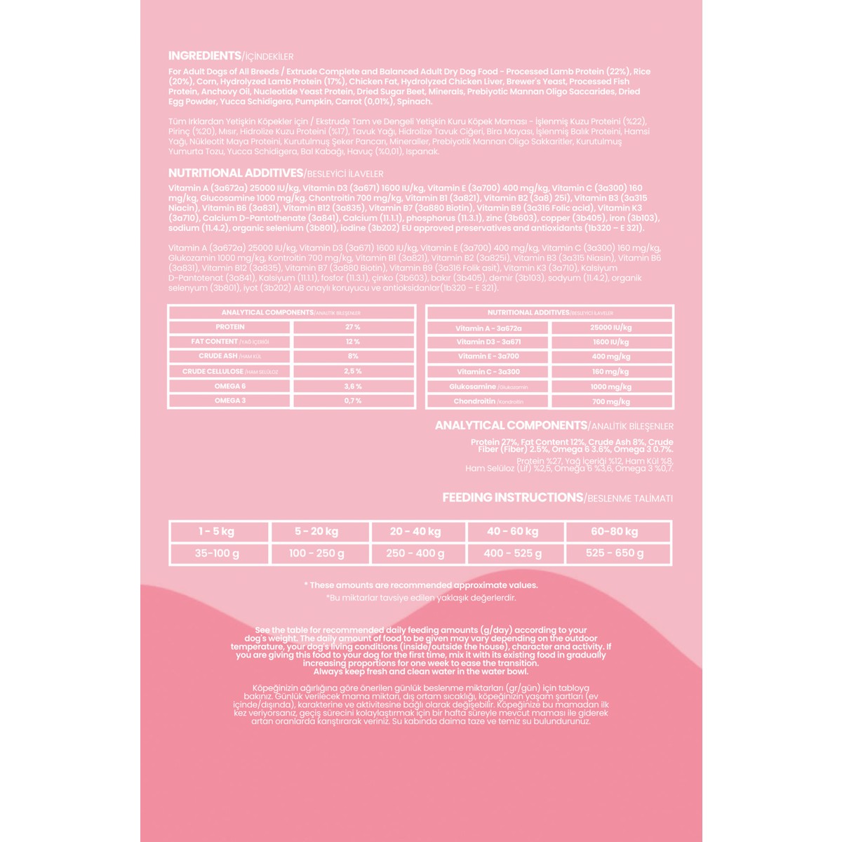 – Kuzu eti içeriğiyle zenginleştirilmiş, yetişkin köpeklerin beslenme ihtiyaçlarına uygun formülasyon.