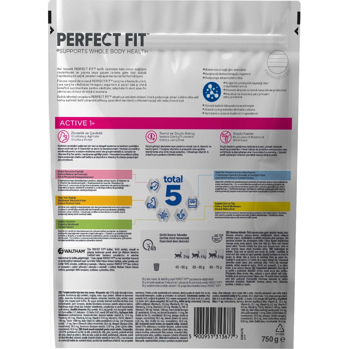 Ürün Açıklaması: Yetişkin kediler için kuru tam mama. Her lezzetli PERFECT FIT tarifi, kedinizin tüm vücut sağlığını desteklemek, yaşına veya yaşam tarzına göre ek sağlık yararları sağlamak ve eksiksiz, dengeli beslenmeyi garanti etmek için Waltham Beslenme Enstitüsü’ndeki beslenme uzmanlarımız ve veteriner hekimlerimiz ile birlikte geliştirilmiştir. Perfect Fit tüm kedilerin en yaygın sağlık gereksinimlerinden 5’ine hitap eden 5 faydayı bir araya getiriyor: Doğal bağışlık ve idrar yolu sağlığını korumaya, sindirime, sağlıklı cilt ve tüy sağlığına ve optimum kilo yönetimi/vücut kondisyonuna destek oluyor.