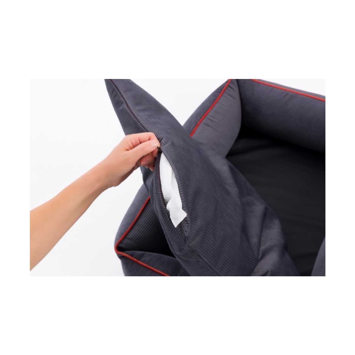 Yatak kılfı ve iç yastık kılıfı evcil hayvan dostu fitilli kadife kumaş.