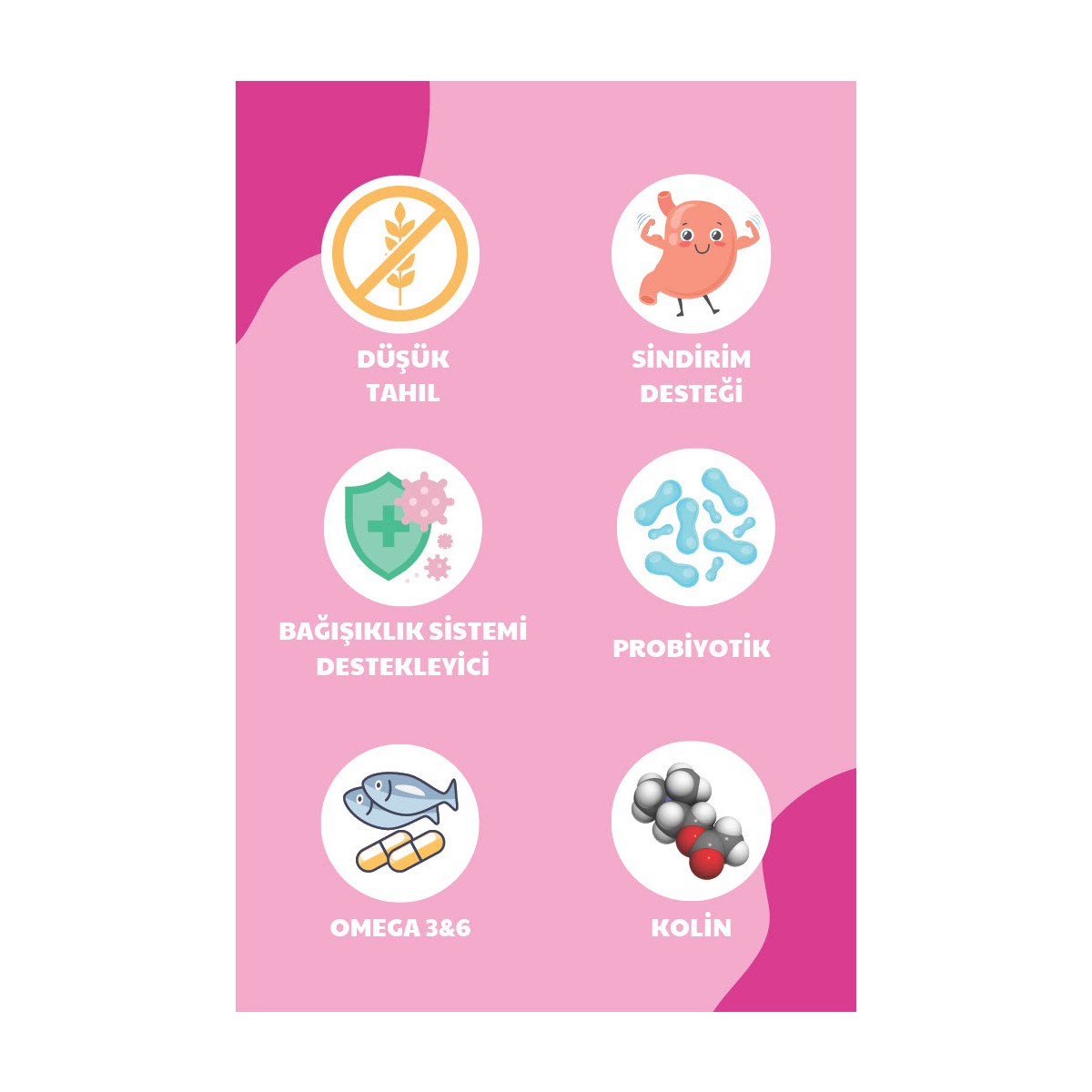 Aynı zamanda besinlerin hızlı emilimini sağlayıp, sindirim sistemini güçlendirici yapısı sayesinde koku ve amonyak kontrolünü sağlanmasında görev yapan özel hammaddeler ile sağlıklı bir metabolizma desteğinin sunulmasına yardımcı olur. Hücresel savunma sistemini güçlendirici katkıları ile sağlıklı doku yapımı sağlayıp evcil hayvanınızın daha uzun yıllar sağlıklı yaşamasına katkıda bulunur.