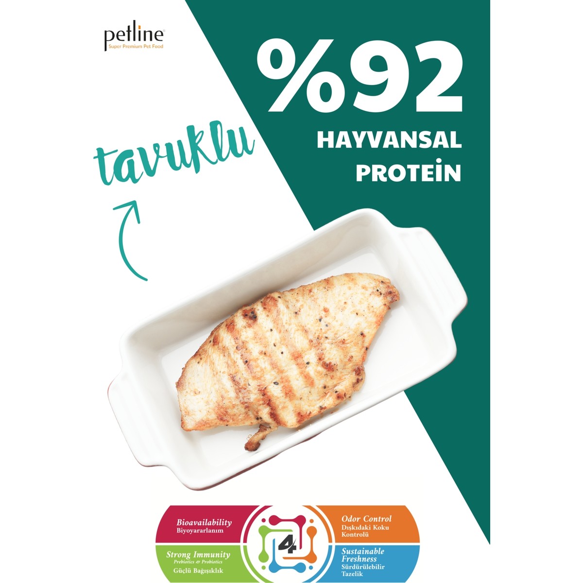 Petline Adult Hydrolyzed Chicken, evde ve ev dışı beslenen tüm ırklar için süper premium tavuk etli yetişkin kedi mamasıdır. Özel içeriği sayesinde strüvit kristallerini önlemeye yardımcı olur. Alltech ile birlikte geliştirilen OptiQuatro® teknolojisi ile sürdürülebilir tazeliği, biyoyararlanımı, dışkıdaki koku kontrolü ve güçlü bağışıklığı doyasıya yaşayın.