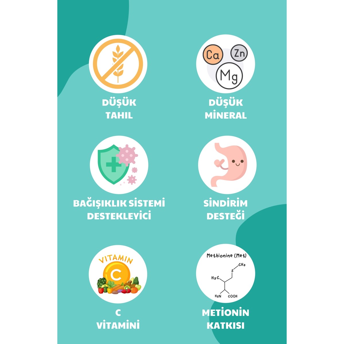 İçindekiler: Hidrolize Kuzu Proteini, İşlenmiş Kuzu Proteini, İşlenmiş Hayvansal Protein, Mısır, Tavuk Yağı, Pirinç, Şeker Pancarı, Ciğer Aroması, Alltech Gıda Takviyeleri Özütü (Mannan Oligosaccarids, Yucca Schidigera, Mikotoksin Bağlayıcısı, Glutamik Asit, Arjinin, Nükleotidler, Aminoasitler, Organik Selenyum, Prebiyotikler, Probiyotikler), Vitaminler ve Mineraller, Ksilo-Oligosakkarit, Bira Mayası, Keten Tohumu, Tuz, Doğal Koruyucular – Antioksidanlar.