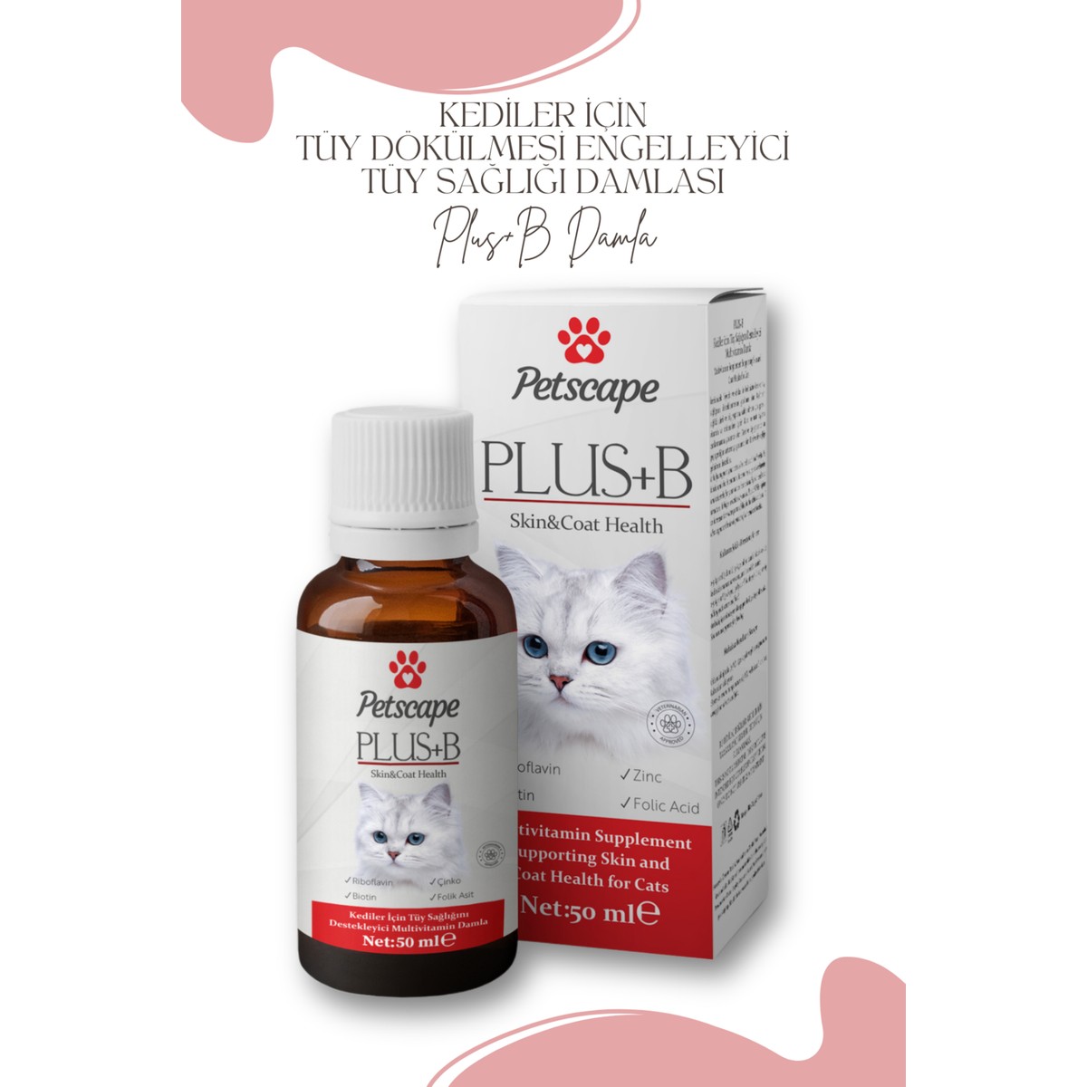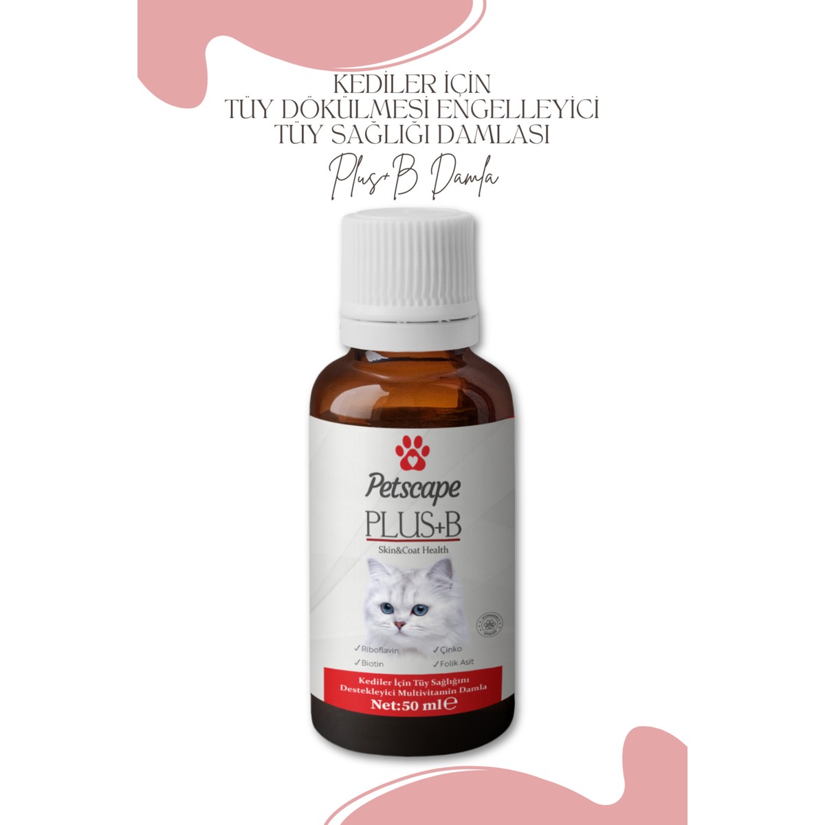 Petscape Plus+B Kedi Multivitamin Damla – Biotinli Tüy Dökülmesini Azaltıcı – Folik Asit Desteği – 50ml