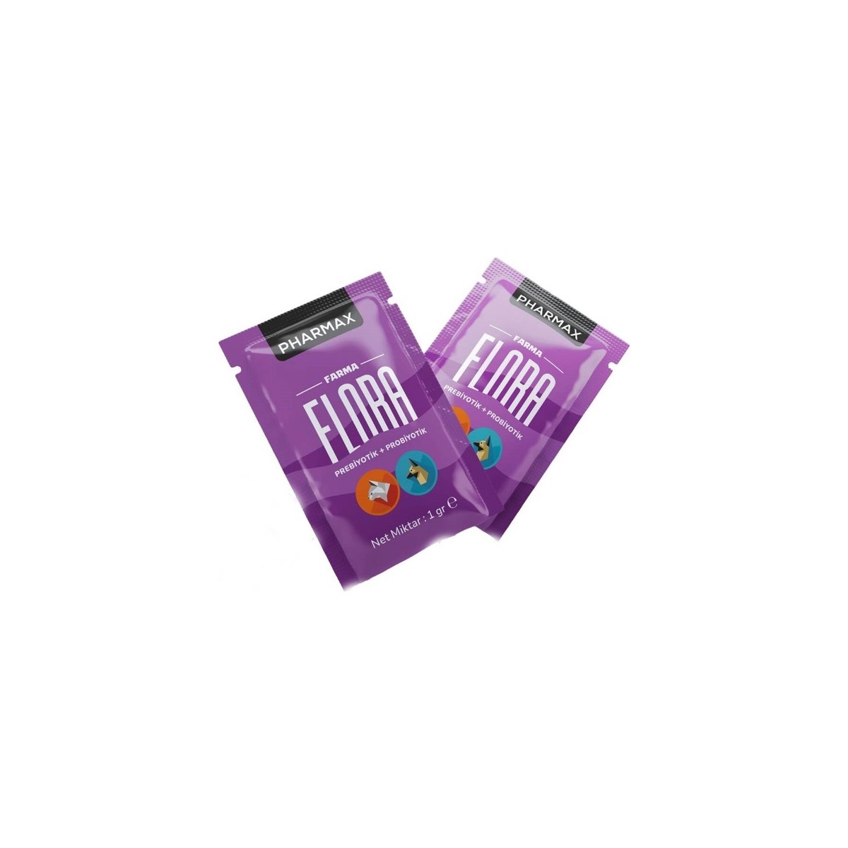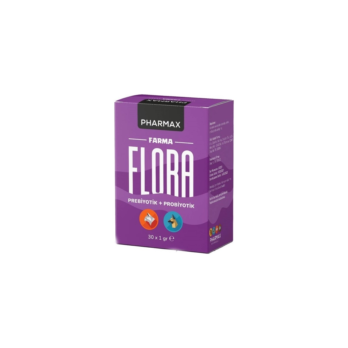 Pharmax Farma Flora Prebiyotik+Probiyotik 1gr x 30 adet saşe içerir. – Kedi, köpek için probiyotik katkısıdır.