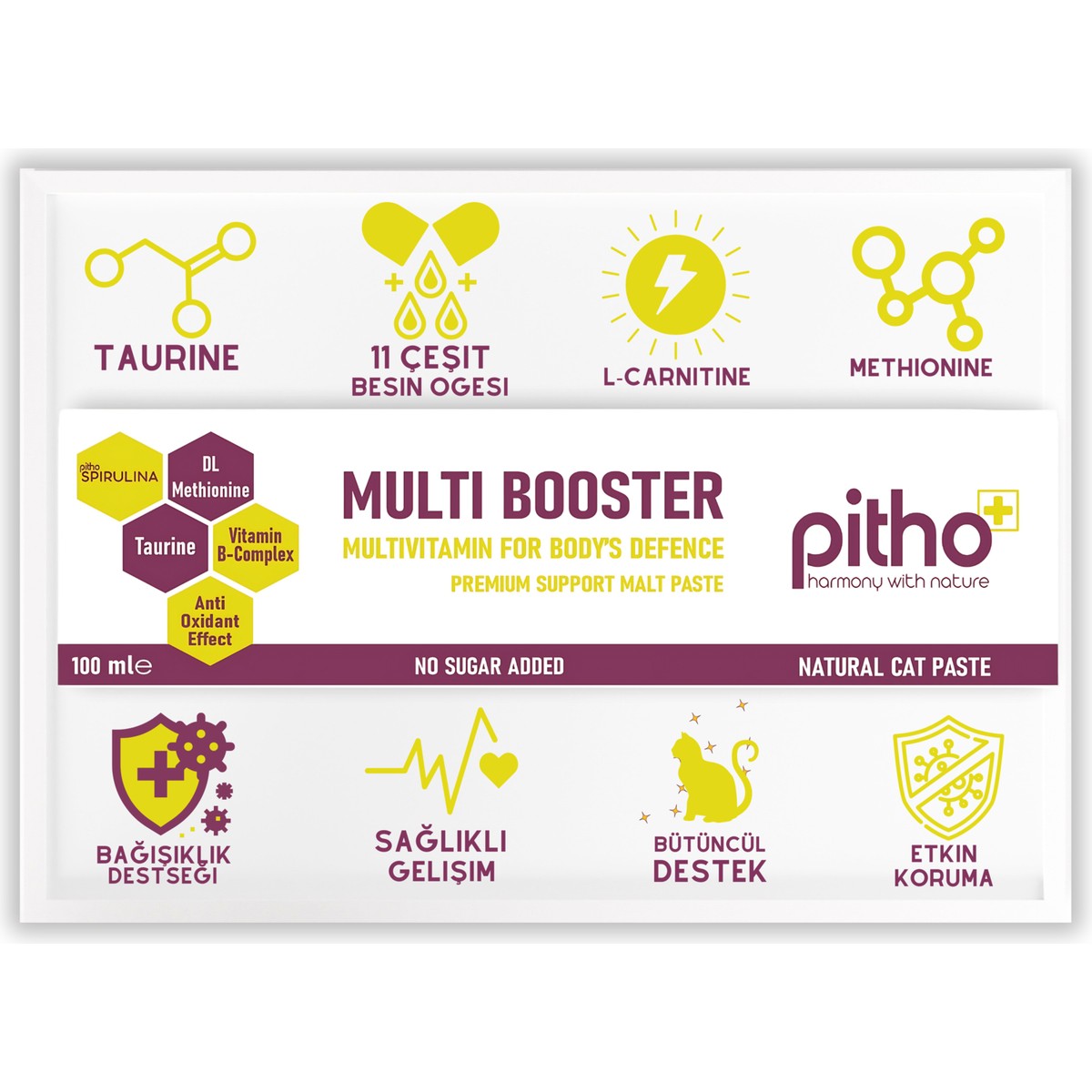 Pitho Multi Booster | Kediler İçin Taurin İçeren Destekleyici Multivitamin Malt 100 ML