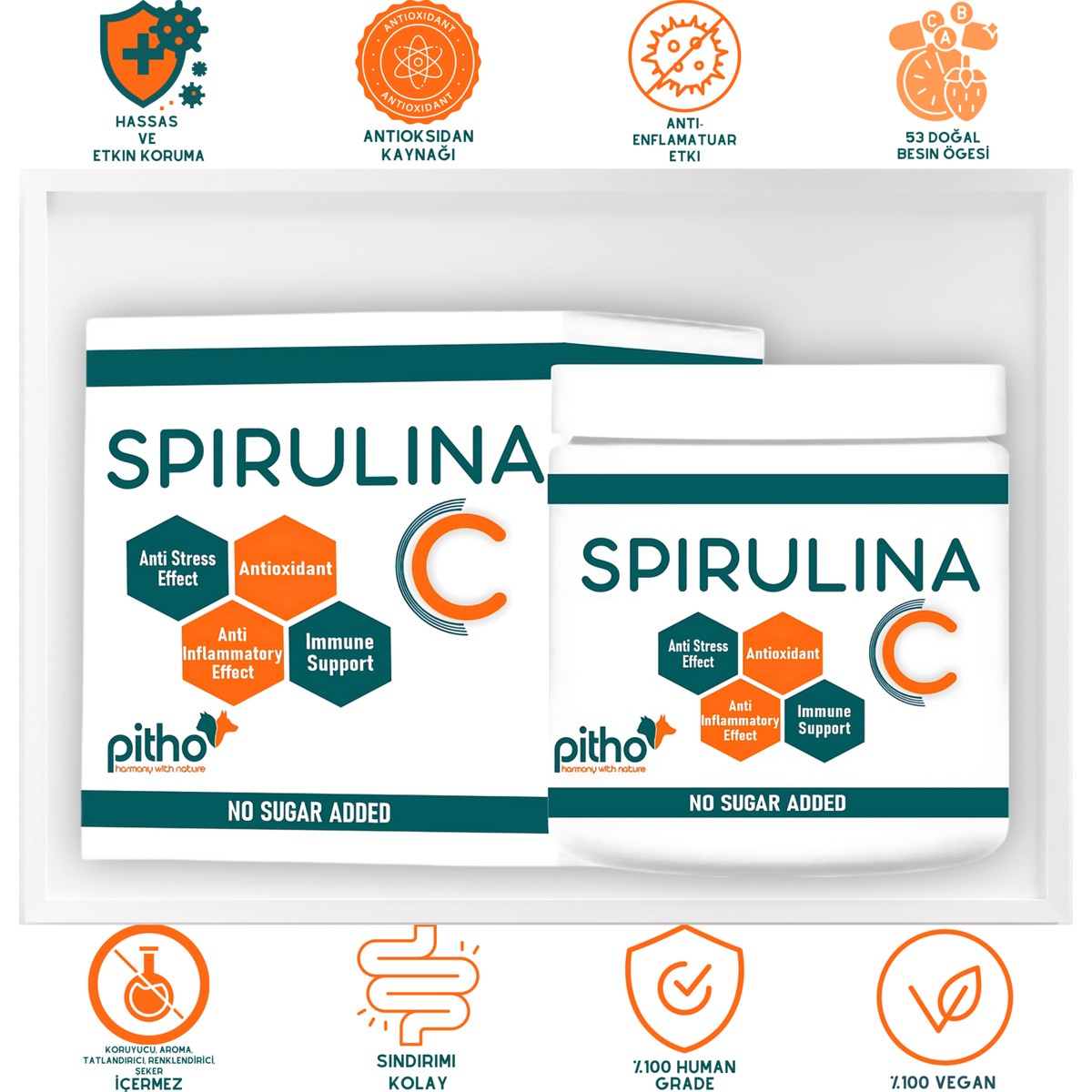 Pitho Spirulina C | Kedi ve Köpekler İçin Doğal Takviye ve Genel Canlılık Desteği 50 GR