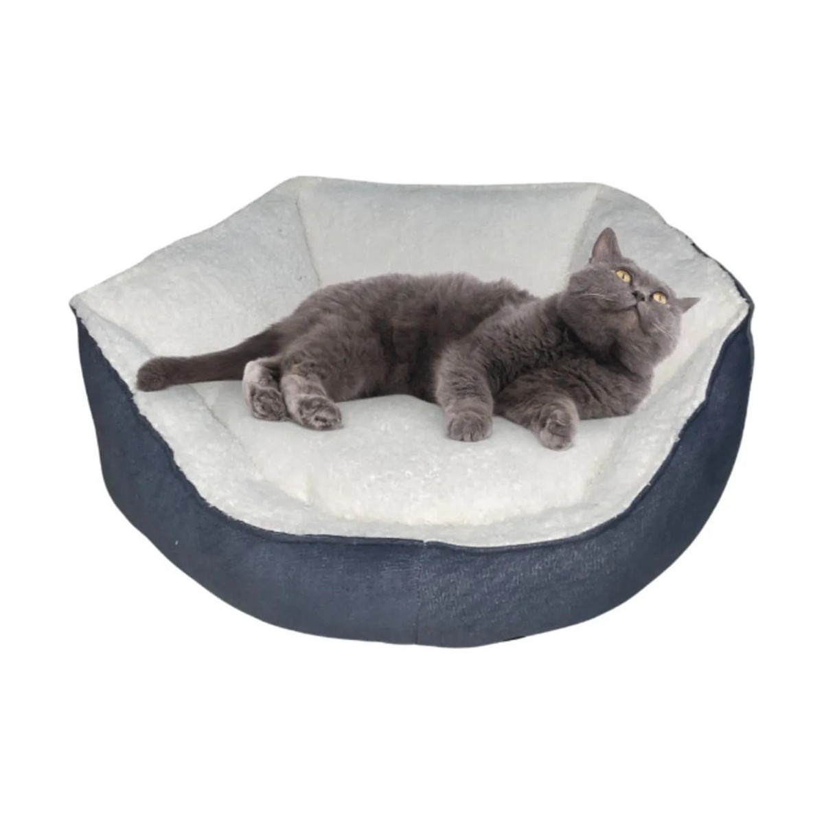 Pribor Yumuşak Silinebilir Kedi ve Köpek Yatağı 55 cm Çap Beyaz-Gri