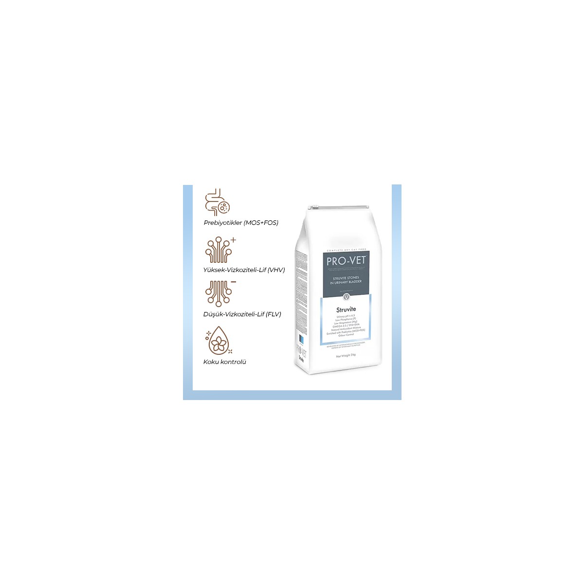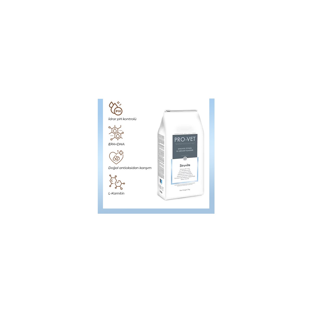 PRO-VET® STRUVITE bu nedenle struvitli (ve obstrüksiyonu olmayan) hastalarda ve tekrarlayan struvit oluşumuna eğilimli hastalarda kullanılabilir.