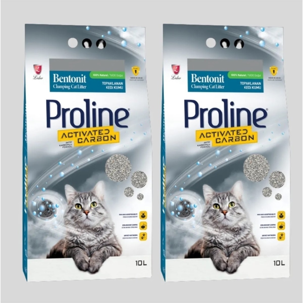 Proline Aktif Karbonlu Topaklanan Kedi Kumu 10 Lt x 2 Adet