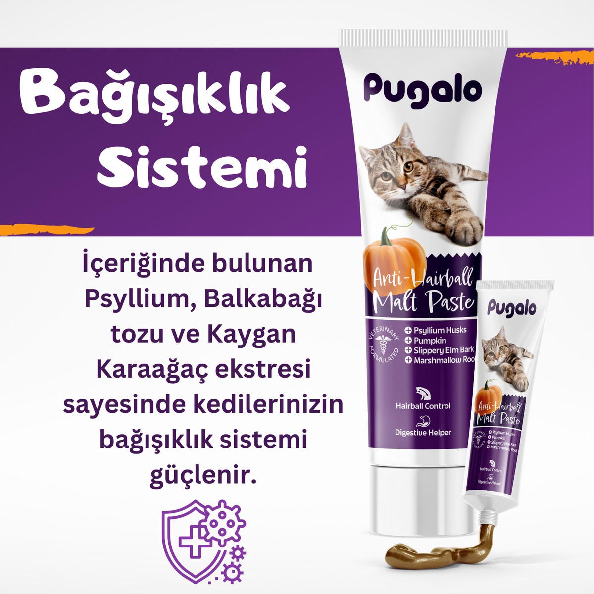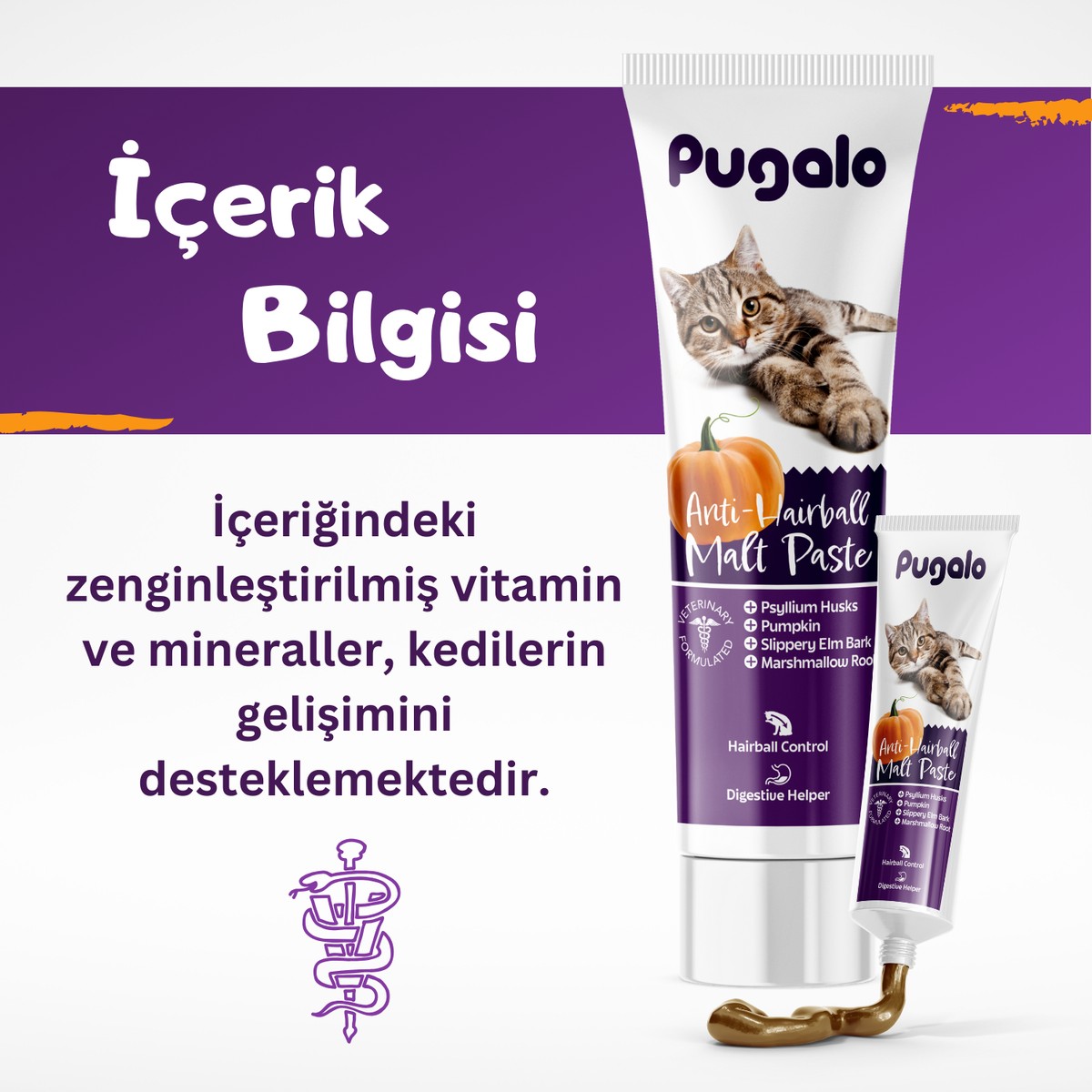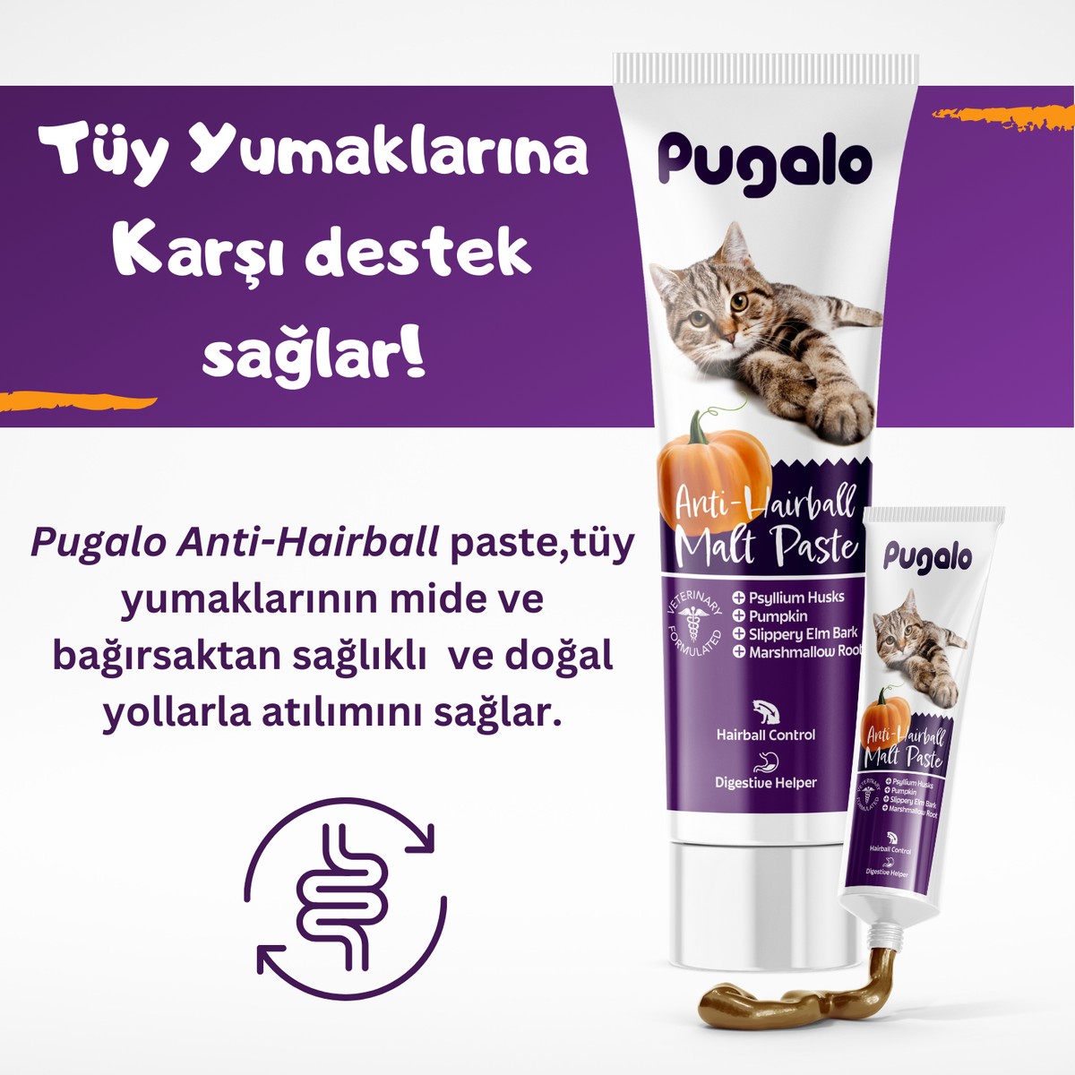 PUGALO Hairball Malt Paste Kediler Için Tüy Yumağı Önleyen Vitamin katkılı Malt Macun