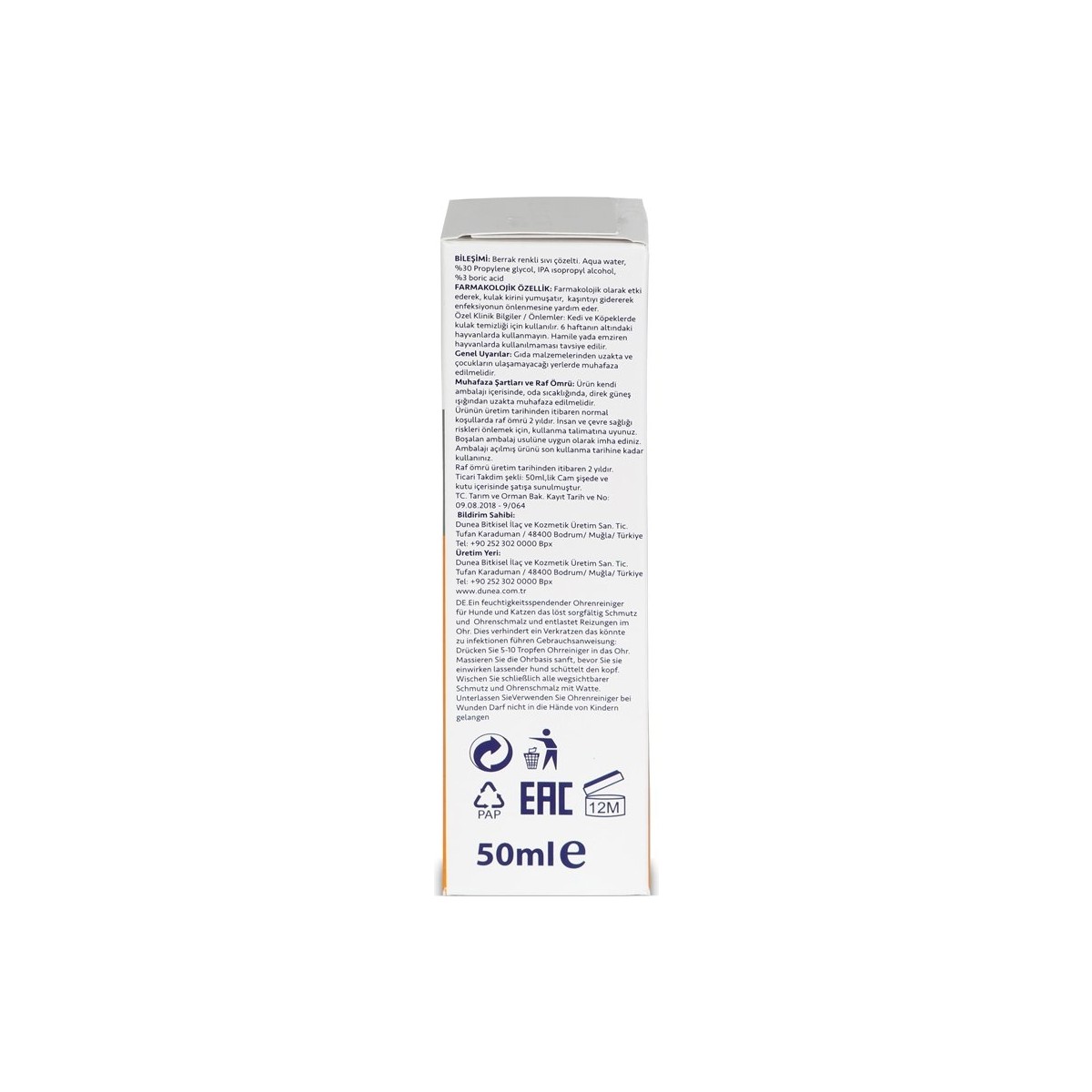 Kedi ve köpeklerde kulak temizliği için kullanılır. Ürün içeriğinde bulunan etken maddeler kulak kirini yumuşatır ve kaşıntıyı giderir.