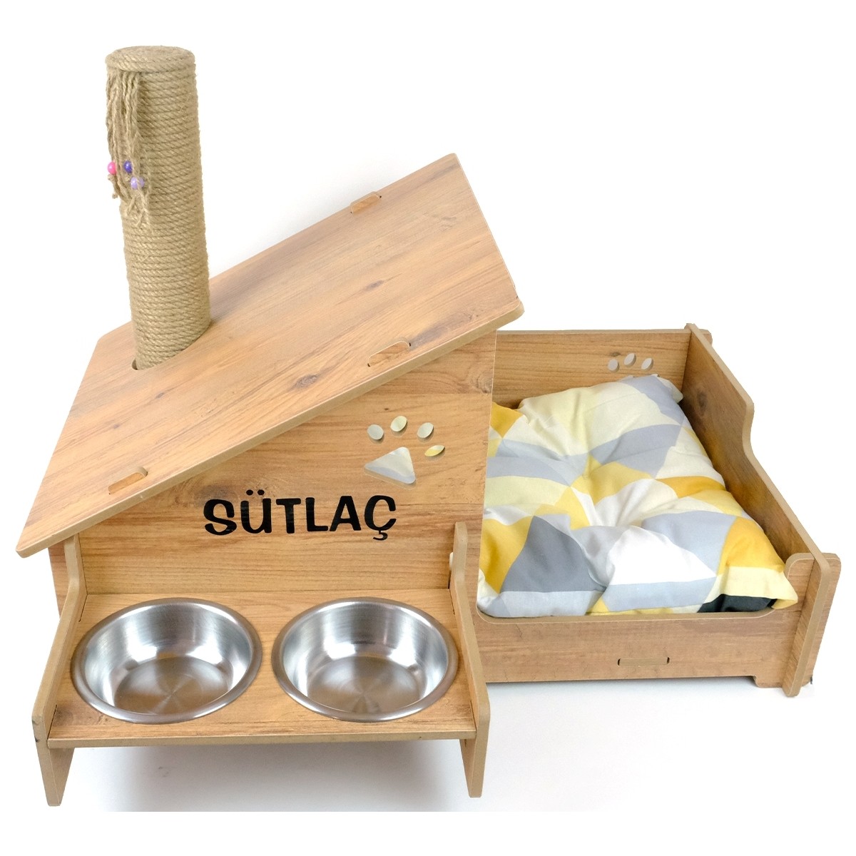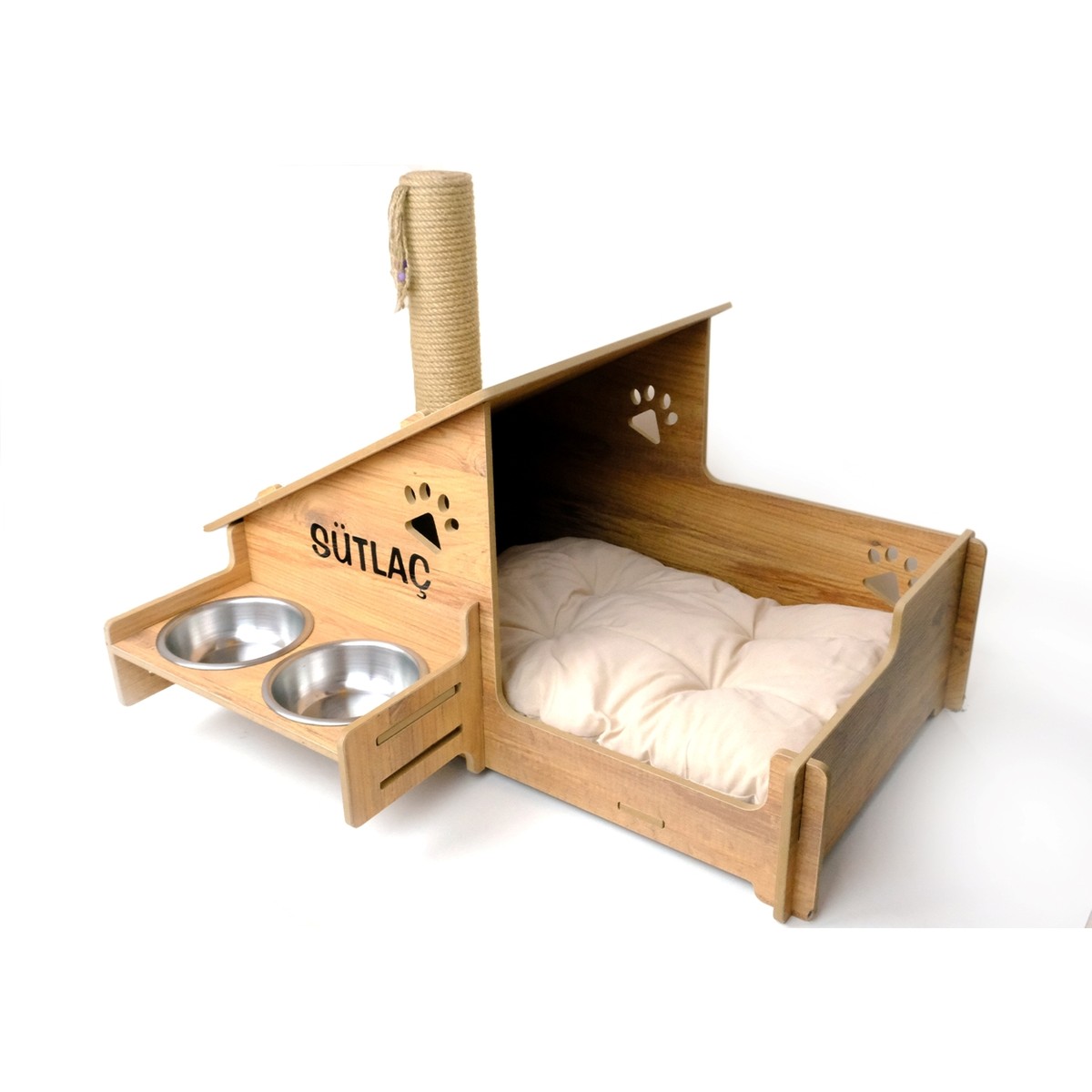 RealWood Ahşap, Çelik Mama Kaplı, Tırmalama Çubuklu Açık-Kapalı Kedi ve Köpek Evi 4 In 1 için 31 değerlendirme