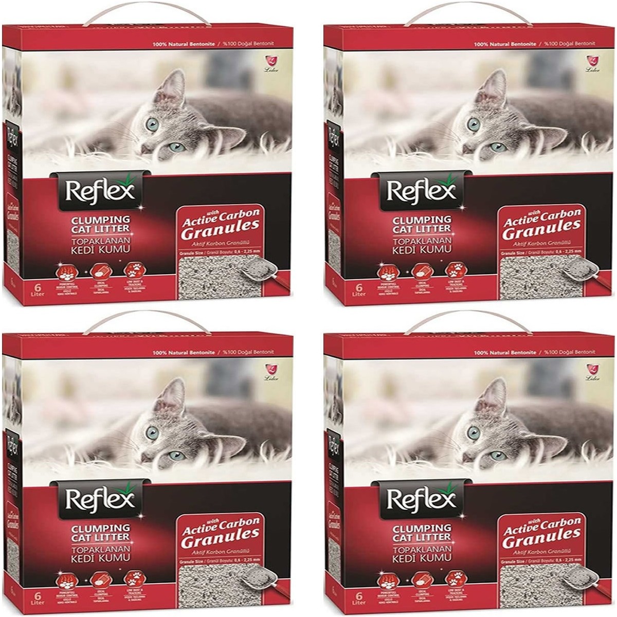Reflex Granül Aktif Karbonlu Topaklanan Kedi Kumu 6 Lt x 4 Adet