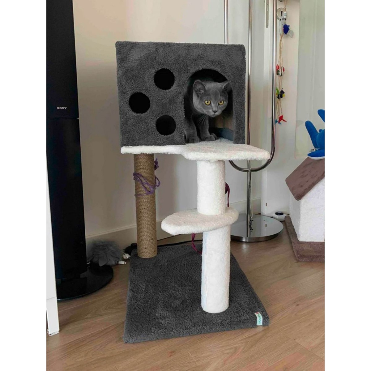– Siyah renkli, orta boy tırmalama ve oyun alanı – Dayanıklı ve uzun ömürlü yapı – Şık ve modern tasarım – Çok renkli detaylar ile görsel çekicilik – Kedi ve küçük evcil hayvanlar için uygun – Güvenli kullanım sağlayan mal