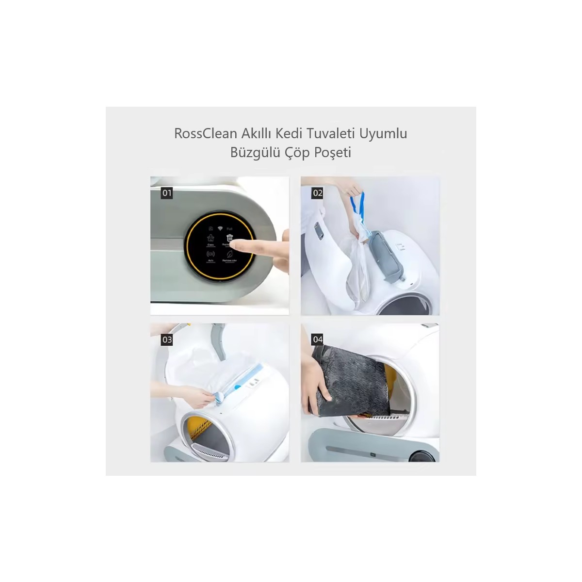 RossClean Akıllı Kedi Tuvaleti Büzgülü Çöp Poşeti Seti