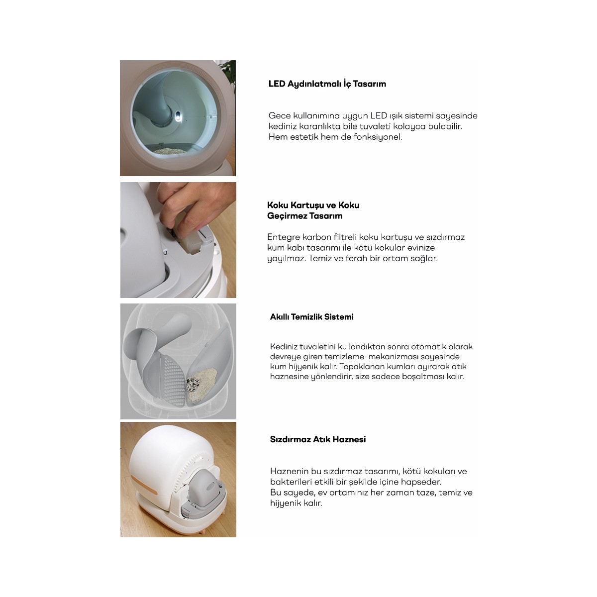 Koku Kartuşlu – LED Aydınlatmalı – Uygulama Kontrollü – UV Temizleme – Koku Geçirmez Kum Kabı
