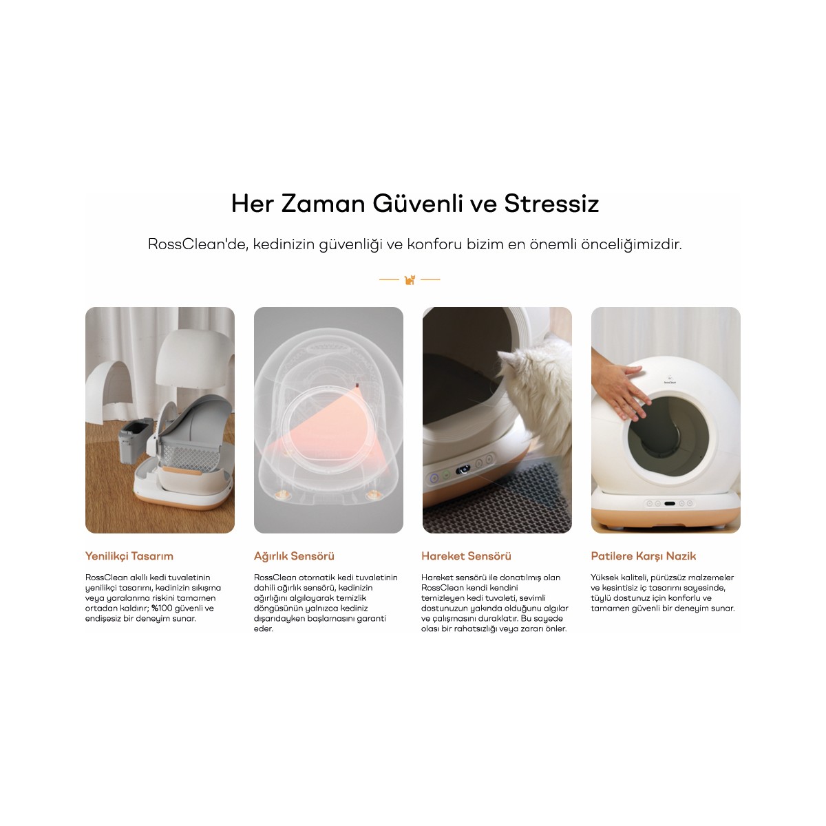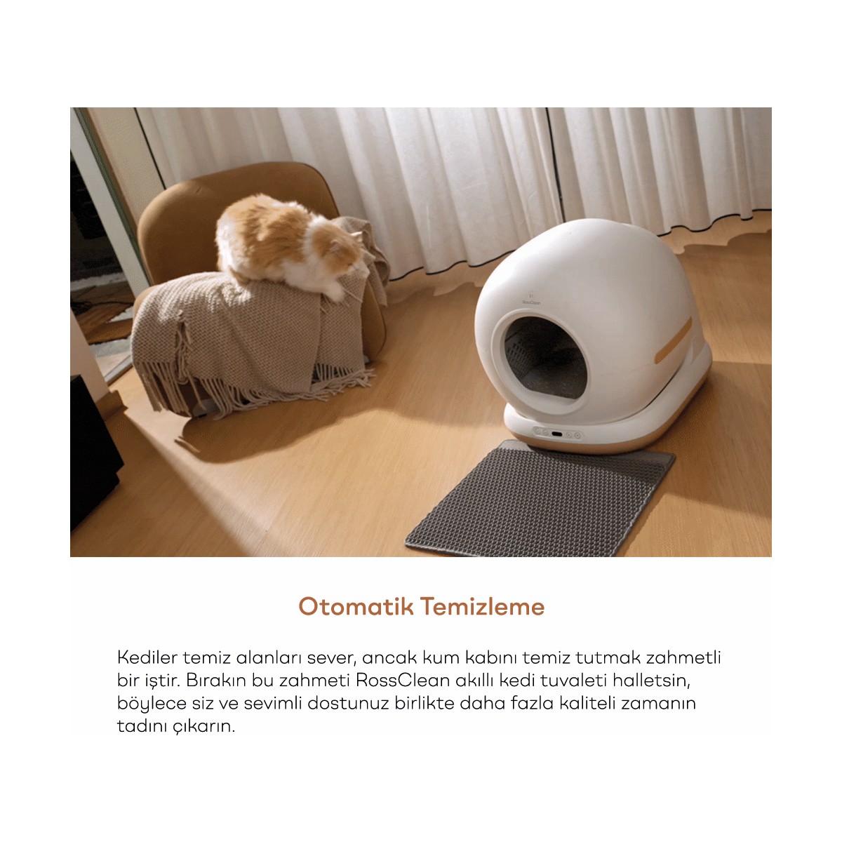 Evcil dostlarınız için tasarlanmış en ileri teknolojili tuvalet sistemi RossClean ile tanışın. Geniş 72L kapasitesi, otomatik temizlik sistemi, uygulama üzerinden kontrol imkanı ve koku engelleme teknolojisiyle kedinizin sağlığını, sizin de ev konforunuzu ön planda tutar.