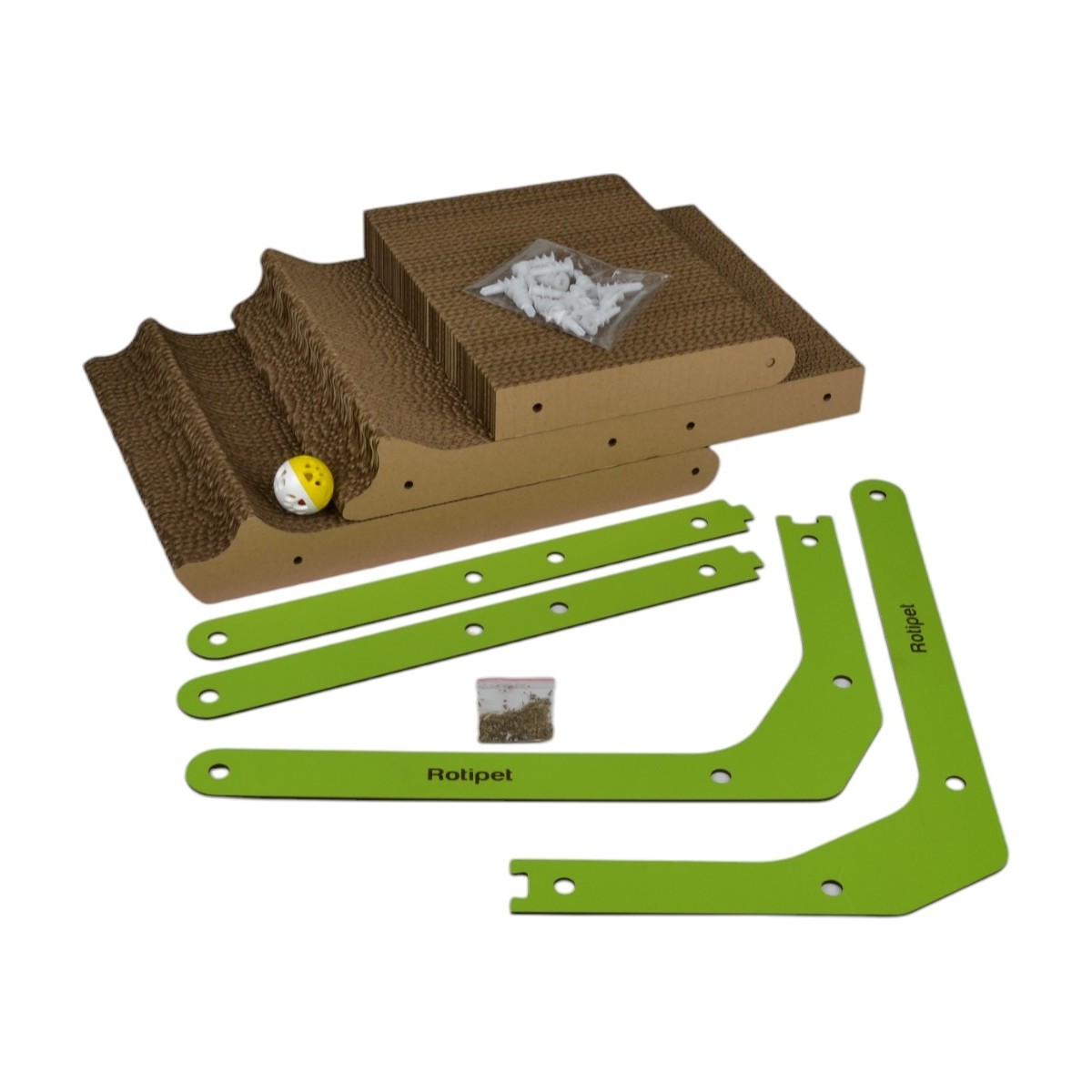 Rotipet karton kedi tırmalamalarının tamamında olduğu gibi, bu üründe de;