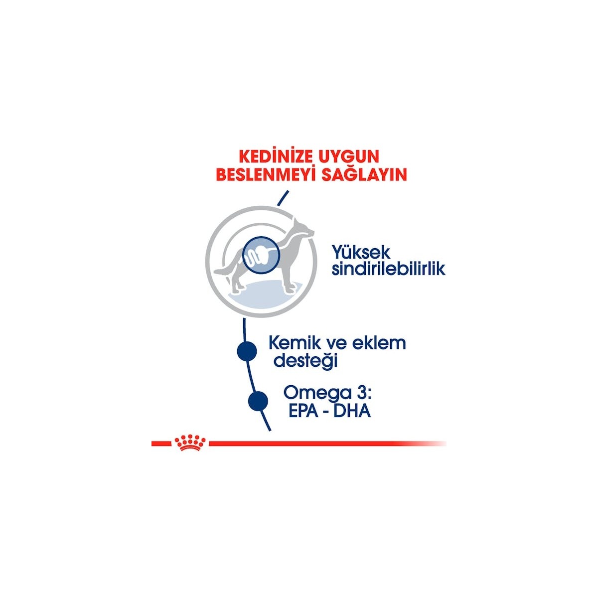 ROYAL CANIN® Maxi Adult Gravy, büyük yetişkin köpeğinizin tüm beslenme ihtiyaçları göz önünde bulundurularak özel olarak formüle edilmiştir. ROYAL CANIN® Maxi Adult Gravy, 15 ay – 8 yaş arası ve 26-44 kg ağırlığındaki tüm büyük ırk köpekler için uygundur. ROYAL CANİN® Maxi Adult Gravy, çok yüksek sindirilebilirliği için seçilmiş dengeli bir diyet lifi ve yüksek kaliteli protein kaynağı içerir. ROYAL CANİN® Maxi Adult Gravy, köpeğinizin yetişkin yılları boyunca güçlü kemiklerini ve sağlıklı eklemlerini desteklemeye ve korumaya yardımcı olan besinler içerir. Dahası, ROYAL CANIN® Maxi Adult Gravy, yetişkin köpeğinizin sağlıklı deri ve tüy durumunu desteklemeye yardımcı olan Omega-3 yağ asitleri EPA ve DHA gibi besinlerle de zenginleştirilmiştir. Her köpeğin bireysel tercihlerini karşılamak için ROYAL CANİN® Maxi Adult, kuru mama olarak da mevcuttur. Karışık beslemeyi düşünüyorsanız, köpeğinizin optimum fayda sağlayacak şekilde hem yaş hem de kuru mamadan doğru miktarda almasını sağlamak için besleme yönergelerimizi takip etmeniz yeterlidir. YÜKSEK SİNDİRİLEBİLİRLİK Sindirim sağlığını ve bağırsak florasının dengesini destekler. KEMİK VE EKLEM DESTEĞİ Büyük ırk köpeklerde sağlıklı kemik ve eklemlerin korunmasına yardımcı olur. OMEGA 3: EPA-DHA Omega 3 yağ asitleri (EPA-DHA) ile zenginleştirilmiş formülü, sağlıklı deri oluşumuna yardımcı olur. KOMPOZİSYON: Et ve hayvansal türevler, bitkisel ve hayvansal yağlar, tahıllar, bitkisel orjinli türevler, bitkisel protein ekstratları, mineraller, maya, çeşitli şekerler, yumuşakçalar ve kabuklu hayvanlar. – İLAVELER (kg başına): Beslenmeye dayalı ilaveler: Vitamin D3: 200 IU, E1 (Demir): 3 mg, E2 (Iyot): 0,26 mg, E4 (Bakır): 2 mg, E5 (Manganez): 1 mg, E6 (Çinko): 10 mg: – Teknolojik ilaveler: Sediamenter kökenli klinoptilolit: 2 g. –