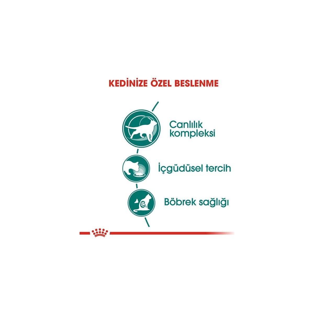Kediler yaşlandıklarında görsel olarak yaşlı gözükmemeleri ve yaşlanmanın etkilerini hissettirmemeleriyle ünlüdür. Kilo almaları ve daha az oyun oynamaları, yaşlanmanın bazı erken belirtileri arasında yer alabilir. Instinctive 7+ Gravy, 7 ila 12 yaş arası kedilerde sağlıklı yaşlanmayı destekler. Sağlıklı yaşlanmayı destekler. Fosfor seviyeleri azaltılmıştır. Yumuşak dilimler dişleri ve diş etlerini zorlamaz. Yetişkin kediler tarafından içgüdüsel olarak tercih edilir. Canlılık kompleksi Özel bir antioksidan kompleksiyle canlılığı desteklemeye yardımcı olur. İçgüdüsel tercih Yetişkin kedilerin içgüdüsel olarak tercih ettiği ideal beslenme profiline uygun şekilde formüle edilmiştir. Böbrek sağlığı Uyarlanmış fosfor içeriği. KOMPOZİSYON: et ve hayvansal türevler, tahılllar, bitkisel protein ekstratları, bitkisel orjinli türevler, mineraller, çeşitli şekerler, yumuşakçalar ve kabuklu hayvanlar. BESLENME TALİMATI: Tabloya bakınız. Parti kodu, tescil numarası ve son kullanma tarihi için, ambalajin üzerine bakınız. Serin ve kuru bir yerde saklayınız. Royal Canin Turkey Evcil Hayvan Ürünleri Ticaret Limited Şirketi tarafından ithal edilmiştir. İLAVELER (her kg için): Beslenmeye dayalı ilaveler: Vitamin D3: 320 IU, E1 (Demir): 3 mg, E2 (İyot): 0,3 mg, E4 (Bakır): 2,3 mg, E5 (Manganez): 0,8 mg, E6 (Çinko): 8 mg. –