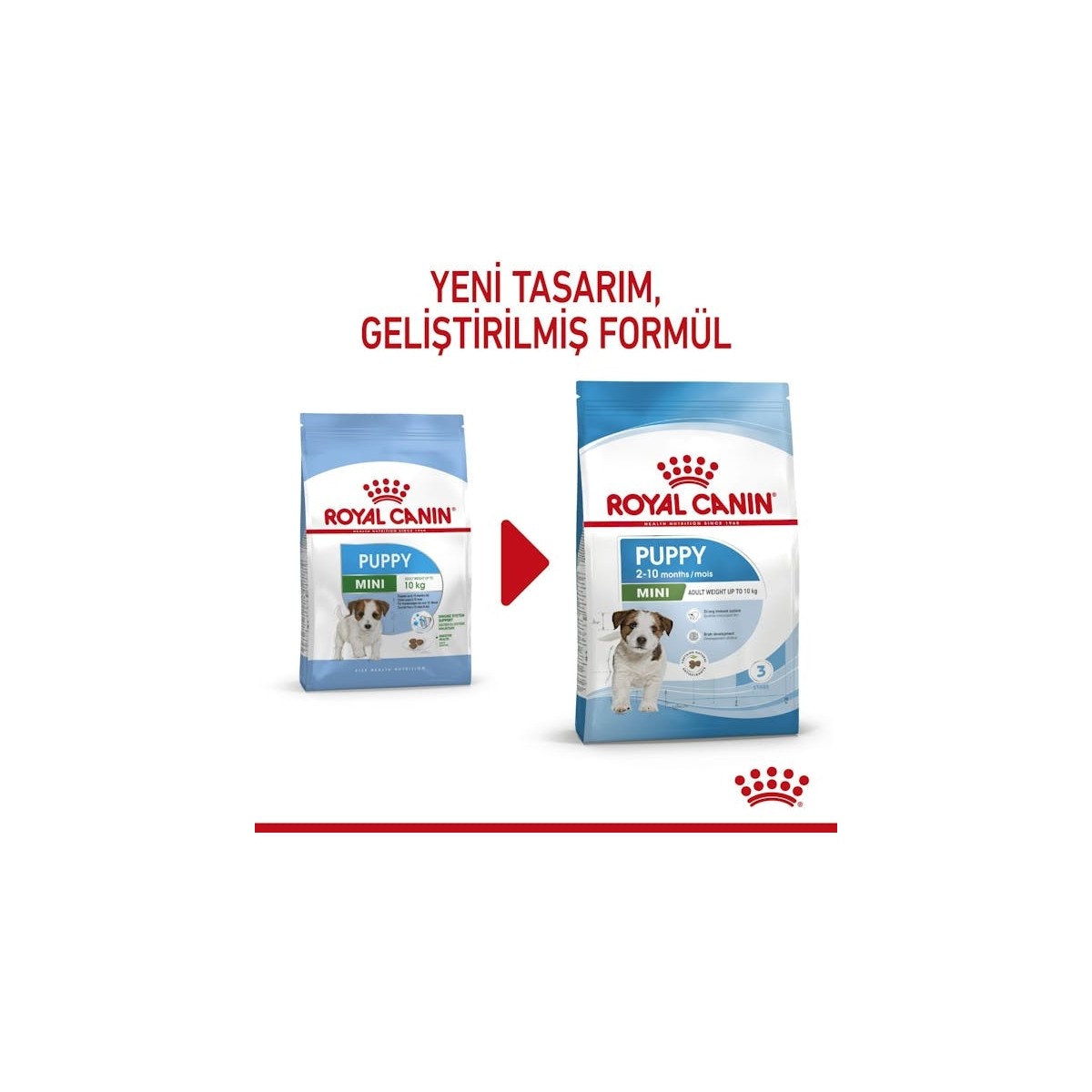 ROYAL CANIN® Mini Puppy, küçük ırk yavru köpeklerin beslenme ihtiyaçlarını desteklemek için özel olarak formüle edilmiştir. Bu formül, 4-10 kg yetişkin ağırlığına erişmesi beklenen 2 ila 10 aylık yavru köpekler için uygundur. Bu özel formül, genç yavru köpeklerde sağlıklı beyin gelişimini desteklemeye yardımcı olduğu bilimsel olarak kanıtlanan (DHA gibi) Omega-3 yağ asitleriyle zenginleştirilmiştir. Formül, hızlı büyüyen küçük ırk yavru köpeklerin yüksek enerji ihtiyaçlarını karşılamak için tasarlanan optimal enerji içeriğine sahiptir. Bu formül, bağışıklık sistemleri hala gelişmekte olan yavru köpeklerin doğal savunmalarını desteklemeye yardımcı olduğu kanıtlanan Vitamin C ve E gibi besin öğelerini de içerir. Faydalı prebiyotikler (örneğin FOS, MOS ve pancar posası) ve çok yüksek sindirilebilirliği olan proteinler, sindirim sağlığı açısından bağırsak mikrobiyotasının (bağırsak florası) sağlıklı dengesini desteklemeye yardımcı olur. Yavru köpeğiniz, ROYAL CANIN® Mini Puppy’nin küçük çenesi için özel olarak tasarlanan tanelerini kolaylıkla kavrayabilir ve çiğneyebilir. Yavru köpeğiniz çiğnerken ortaya çıkan mekanik fırçalama etkisi diş sağlığının korunmasına yardımcı olur. Yavru köpeğiniz 10 aylık olduğunda, yetişkin bir köpek olarak beslenme ihtiyaçlarını karşılamak için özel olarak uyarlanan bir diyete ihtiyaç duyar. Bu aşamada, kuru mama ya da soslu yaş mama olarak sunulan ROYAL CANIN® Mini Adult’a geçebilirsiniz. Onaylanmış Formül %88 yetiştirici memnuniyeti. (2020 ve 2021 yıllarında gerçekleştirilen bir yetiştirici onay anketine dayanmaktadır. ) %100 hayvan sahibi memnuniyeti. (2020 ve 2021 yıllarında gerçekleştirilen evcil hayvan sahipleri anketine dayanmaktadır.) Özellikler Doğal antidoksidanlar içerir. Yapay renklendiriciler içermez. Yapay tatlandırıcılar içermez. Güçlü Bağışıklık Sistemi Etkinliği bilimsel olarak kanıtlanmış, E ve C vitaminleri de içeren özel kompleks sayesinde yavru köpeklerin bağışıklık sistemlerini destekler. Beyin Gelişimi Omega 3 yağ asitleri (DHA) ile zenginleştirilmiş bu formül, yavru köpeklerin beyin gelişimini ve sağlıklı görme fonksiyonlarını da destekler. Mikrobiyom Desteği Prebiyotik (MOS) kombinasyonu & yüksek sindirilebilirlikli proteinler sayesinde sağlıklı bağırsak mikrobiyotasını ve sindirim sağlığını destekler. Optimum enerji içeriği Kısa bir büyüme dönemi bulunan orta büyüklükteki ırk yavru köpeklerin yüksek enerji ihtiyaçlarını karşılar. KOMPOZİSYON: Kurutulmuş kümes hayvanları proteinleri, pirinç, hayvansal yağlar, buğday gluten*, mısır, pancar küspesi, mısır unu, hidrolize hayvansal proteinler, mısır gluten, mineraller, soya yağı, balık yağı, frukto-oligo-sakkaritler, hidrolize maya (manno-oligo-sakkarit ve beta-glukan kaynağı) (%0,30), alg yağı Schizochytrium sp. (DHA kaynağı), Yucca Schidigera suyu, kadife çiçeği unu (lutein kaynağı). BESLENME TALİMATI: Tabloya bakınız. Parti kodu, tescil numarası ve son kullanma tarihi için, ambalajin üzerine bakınız. Serin ve kuru bir yerde saklayınız. Royal Canin Turkey Evcil Hayvan Ürünleri Ticaret Limited Şirketi tarafından ithal edilmiştir. İLAVELER (her kg için): Beslenmeye dayalı ilaveler: Vitamin A: 21500 IU, Vitamin D3: 1000 IU, Demir (3b103): 38 mg, İyot (3b201, 3b202): 3,8 mg, Bakır (3b405, 3b406): 12 mg, Manganez (3b502, 3b504): 50 mg, Çinko (3b603, 3b605, 3b606): 128 mg, Selenyum (3b801, 3b811, 3b812): 0,06 mg – Teknolojik ilaveler: Sedimanter kökenli klinoptilolit: 10 g – Koruyucular – Antioksidanlar. *L.I.P.: çok yüksek sindirebilirlik özelliğinden dolayı seçilmiş protein