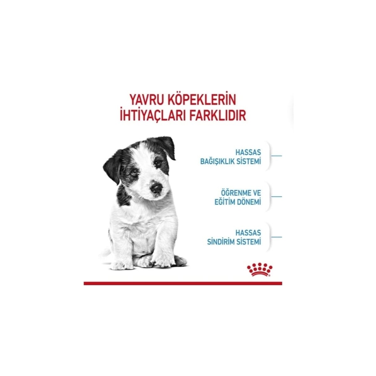 ROYAL CANIN® Mini Puppy, küçük ırk yavru köpeklerin beslenme ihtiyaçlarını desteklemek için özel olarak formüle edilmiştir. Bu formül, 4-10 kg yetişkin ağırlığına erişmesi beklenen 2 ila 10 aylık yavru köpekler için uygundur. Bu özel formül, genç yavru köpeklerde sağlıklı beyin gelişimini desteklemeye yardımcı olduğu bilimsel olarak kanıtlanan (DHA gibi) Omega-3 yağ asitleriyle zenginleştirilmiştir. Formül, hızlı büyüyen küçük ırk yavru köpeklerin yüksek enerji ihtiyaçlarını karşılamak için tasarlanan optimal enerji içeriğine sahiptir. Bu formül, yavru köpeklerin doğal savunmalarını desteklemeye yardımcı olduğu kanıtlanan Vitamin C ve E gibi besin öğelerini de içerir. Yavru köpeğiniz, ROYAL CANIN® Mini Puppy’nin küçük çenesi için özel olarak tasarlanan tanelerini kolaylıkla kavrayabilir ve çiğneyebilir. Yavru köpeğiniz çiğnerken ortaya çıkan mekanik fırçalama etkisi diş sağlığının korunmasına yardımcı olur. Yavru köpeğiniz 10 aylık olduğunda, yetişkin bir köpek olarak beslenme ihtiyaçlarını karşılamak için özel olarak uyarlanan bir diyete ihtiyaç duyar. Bu aşamada, kuru mama ya da soslu yaş mama olarak sunulan ROYAL CANIN® Mini Adult’a geçebilirsiniz.